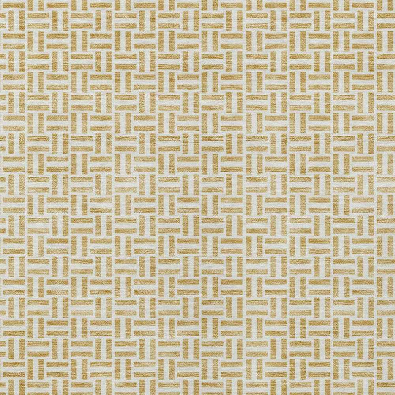 5' X 8' Gold And Ivory Geometric Washable Indoor Outdoor Area Rug