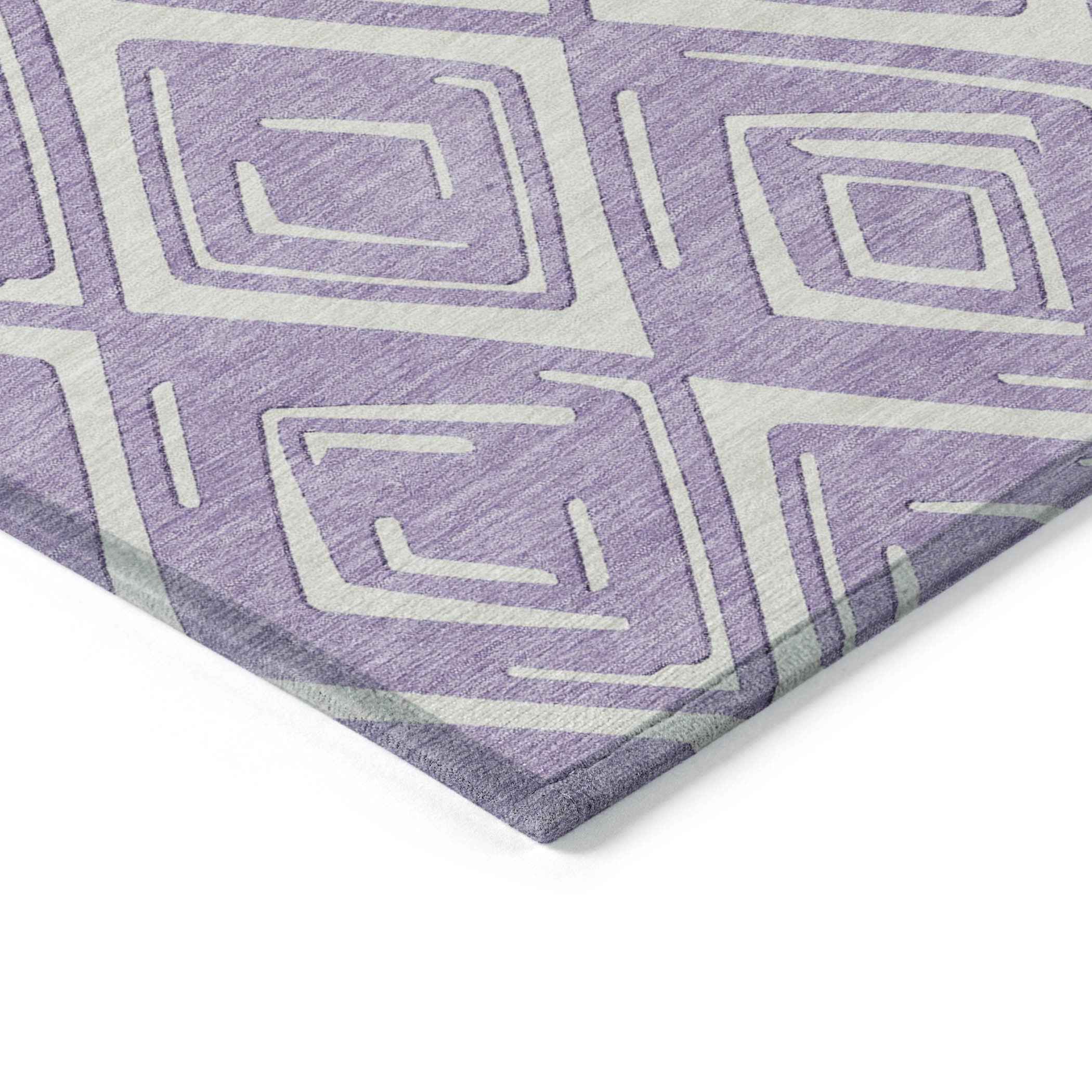 This 5-foot x 8-foot lavender and ivory geometric washable indoor outdoor area rug, is a great way to add warmth to a room. This rectangle shaped rug features a geometric design that will work well both indoors or out. A classic shape marries with good looking design for your living room, hall, bedroom, porch, patio, or poolside. Ideal for outdoor spaces or high traffic areas with kids and pets, this rug is made from heavy duty polyester that is stain resistant to help repel water, dirt, and stains. Makes a great way to dress up your patio, porch, or poolside, but also works well as a durable and easy to maintain option in the kitchen, family room, or mudroom. 60-inch h x 90-inch w x 0.19-inch d.