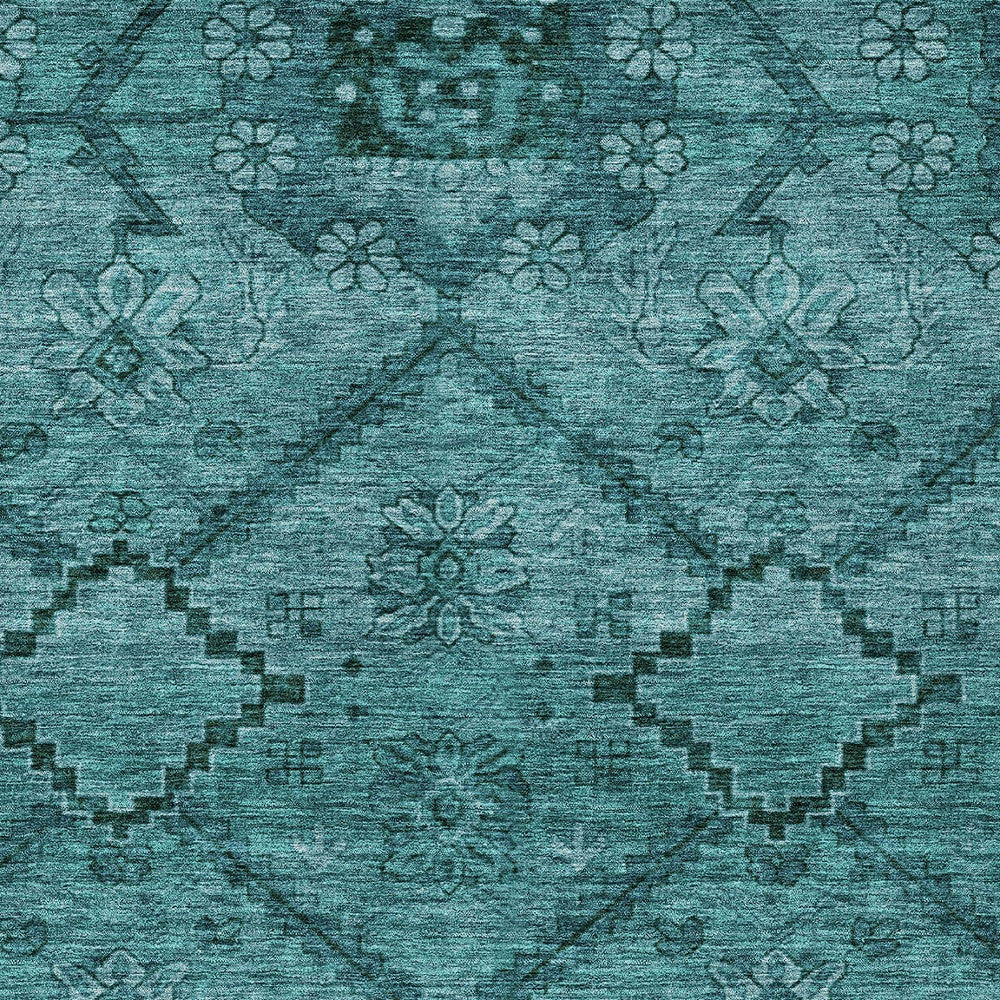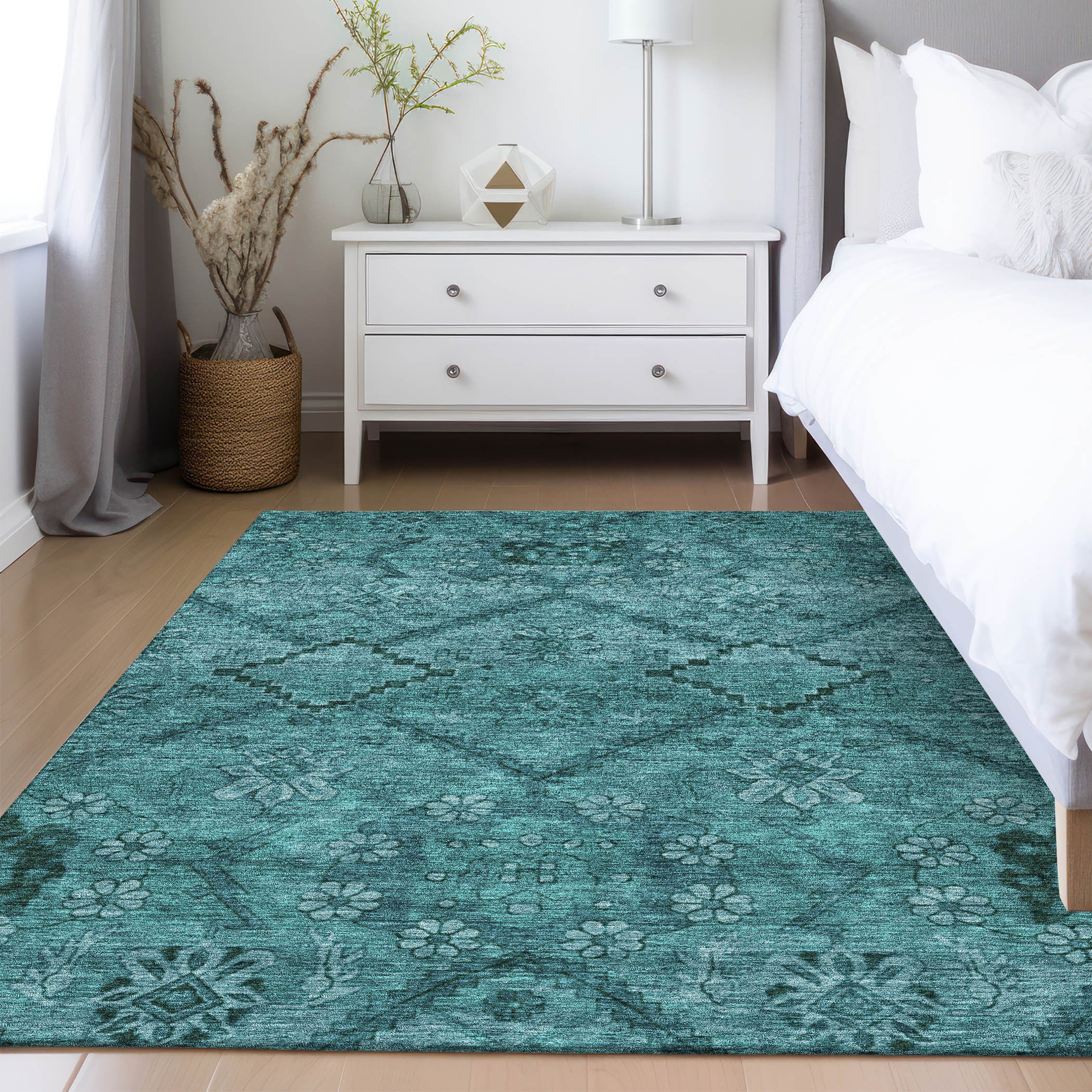 5' X 8' Teal Blue And Aqua Floral Washable Indoor Outdoor Area Rug