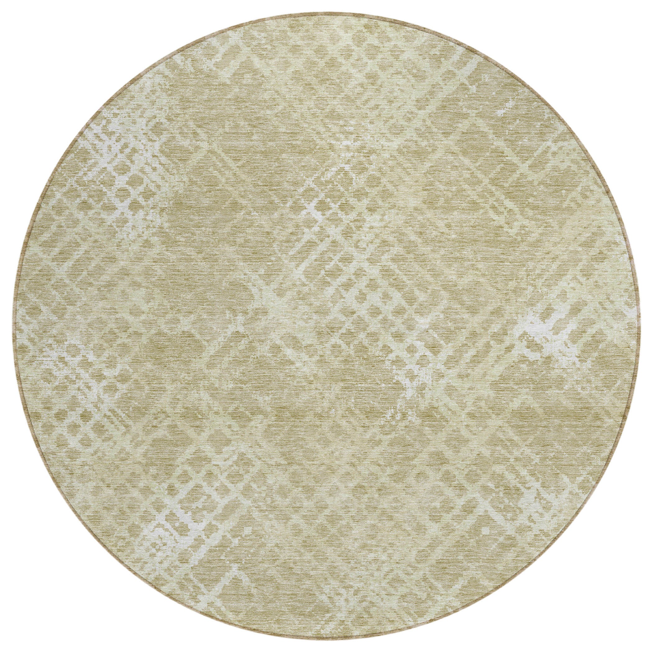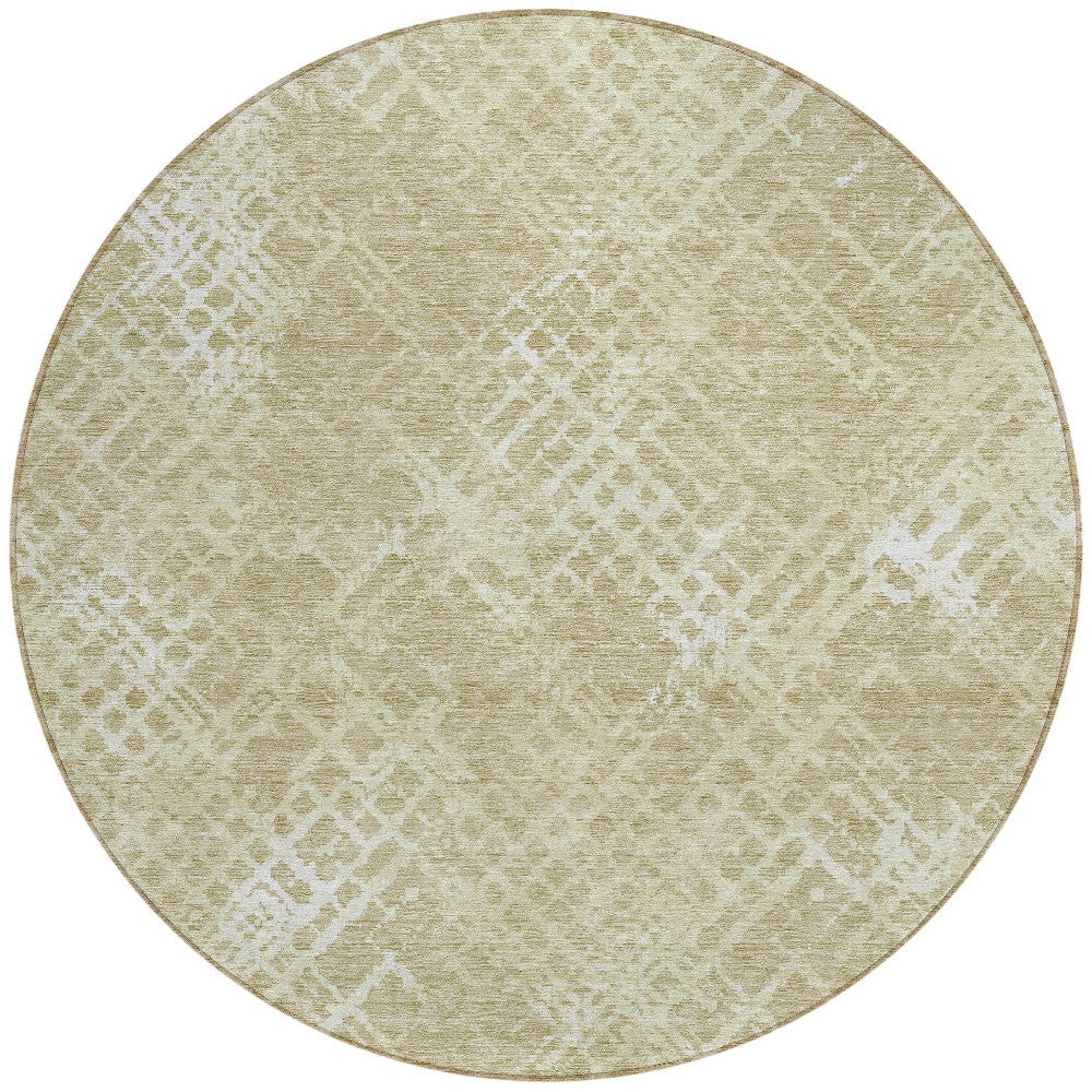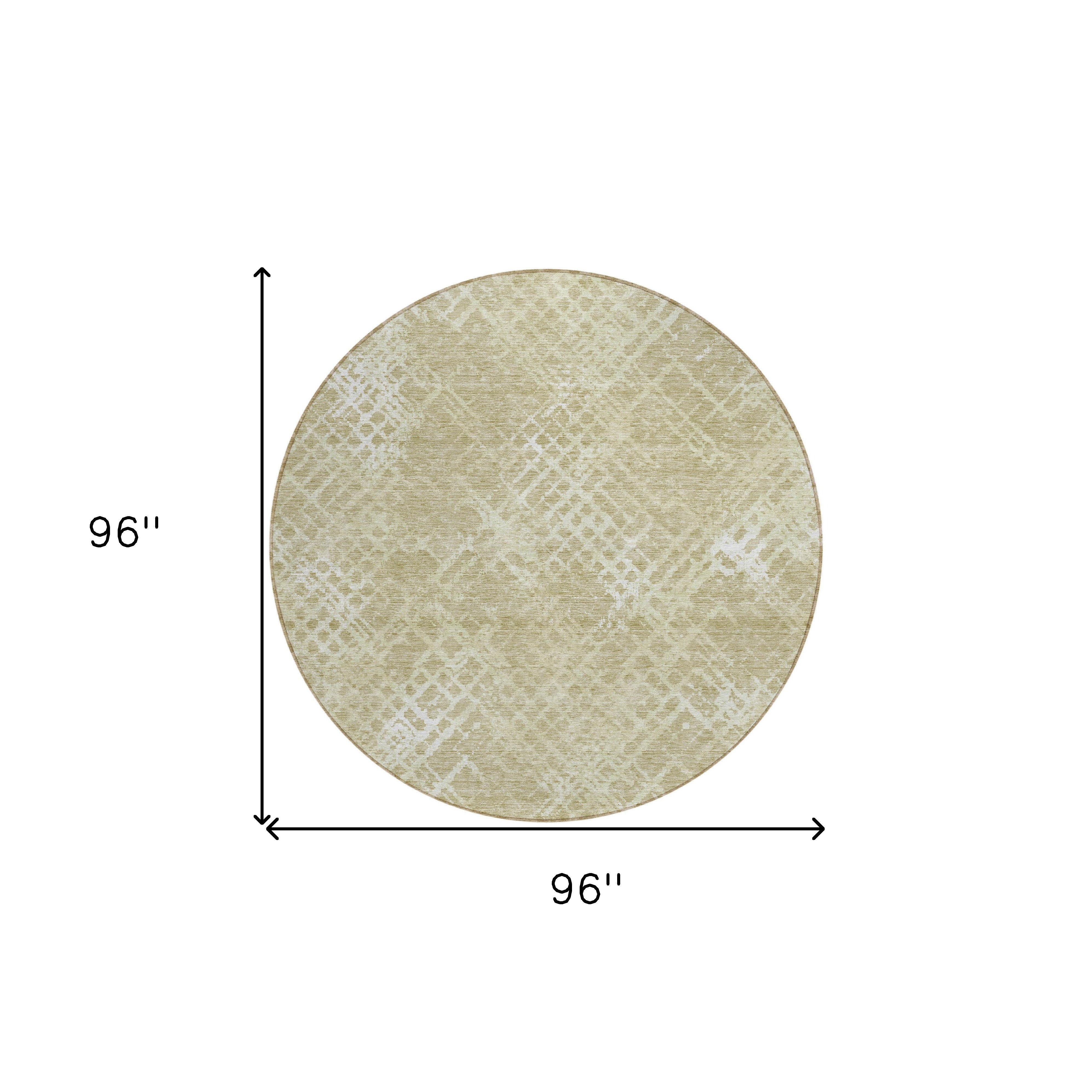 8' Beige Tan And Ivory Round Geometric Washable Indoor Outdoor Area Rug