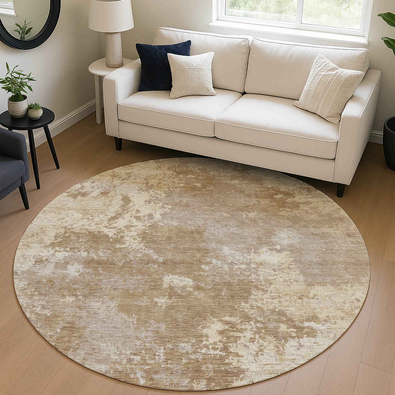 8' Brown And Beige Round Abstract Washable Indoor Outdoor Area Rug