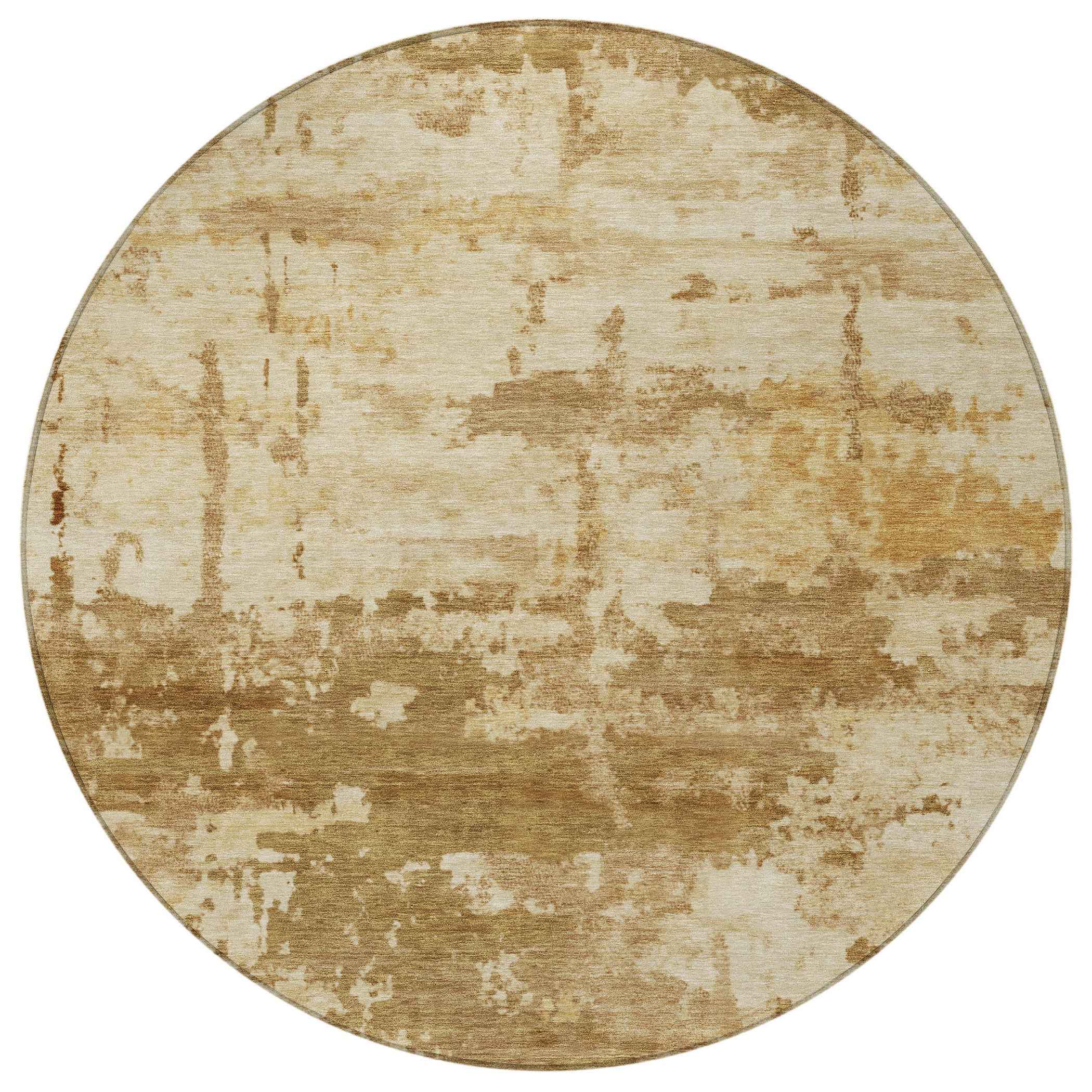 8' Brown And Beige Round Abstract Washable Indoor Outdoor Area Rug