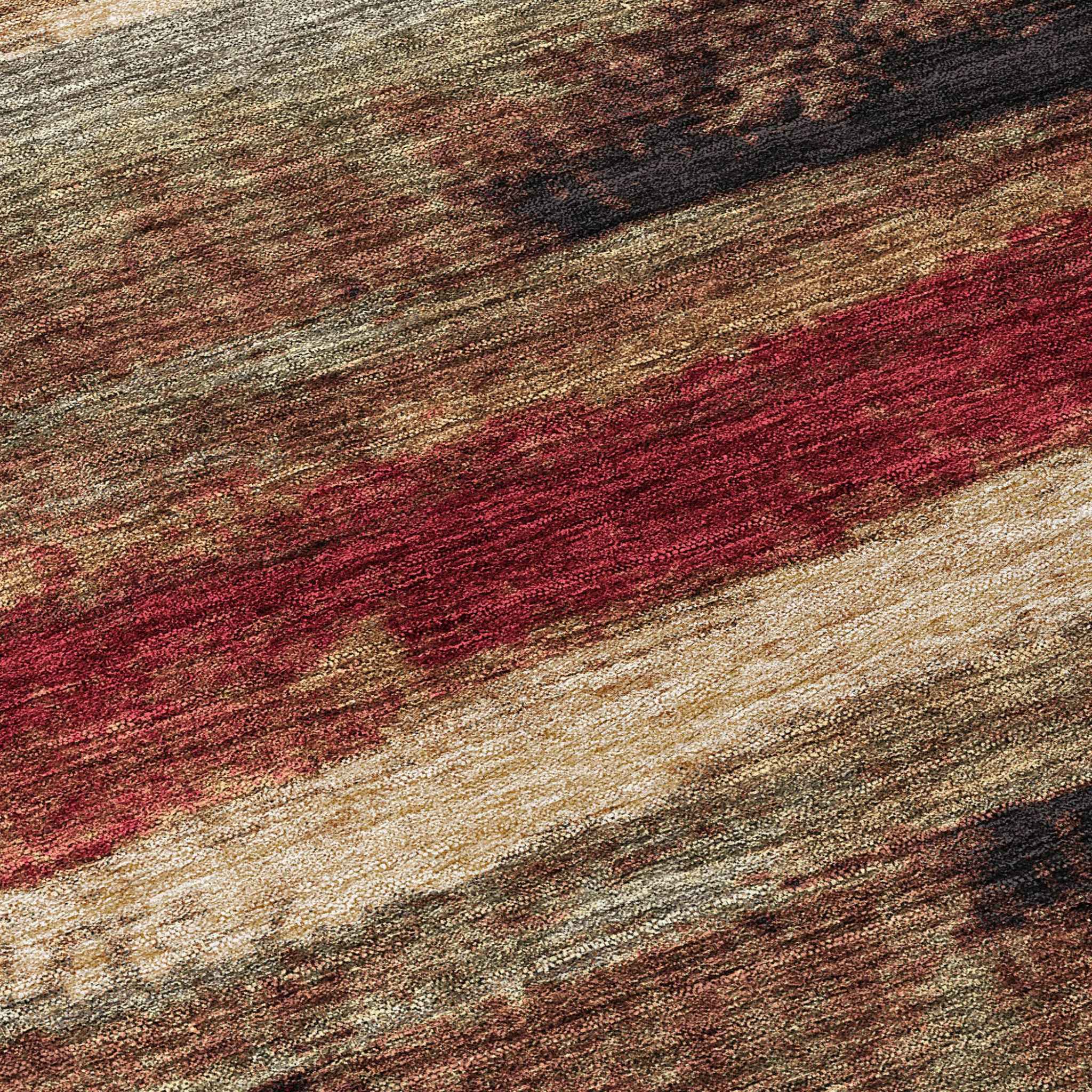 8' Brown Beige And Burgundy Round Abstract Washable Indoor Outdoor Area Rug