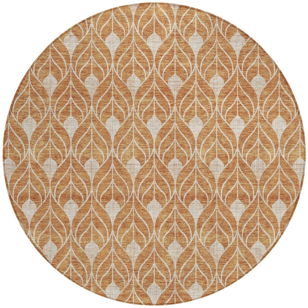 8' Copper And Beige Round Geometric Washable Indoor Outdoor Area Rug