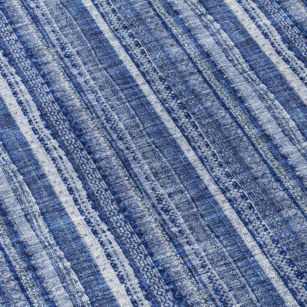 8' Denim Blue And Ivory Round Striped Washable Indoor Outdoor Area Rug Перейти к содержанию