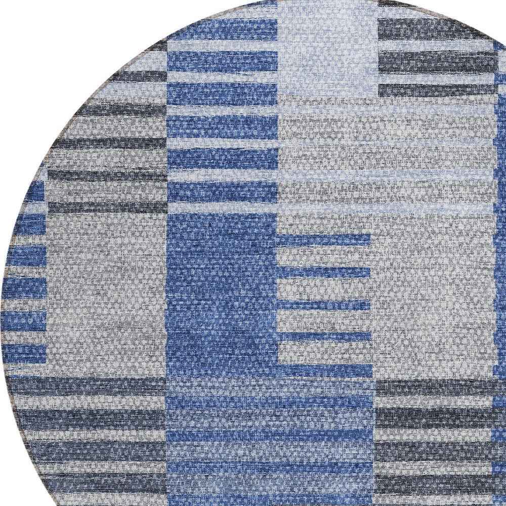 8' Denim Blue And Navy Blue Round Striped Washable Indoor Outdoor Area Rug