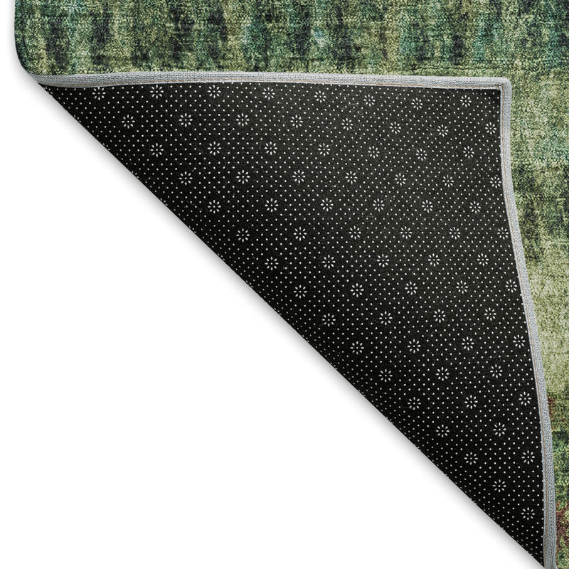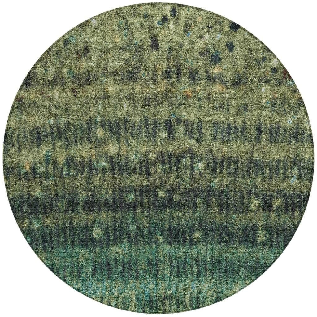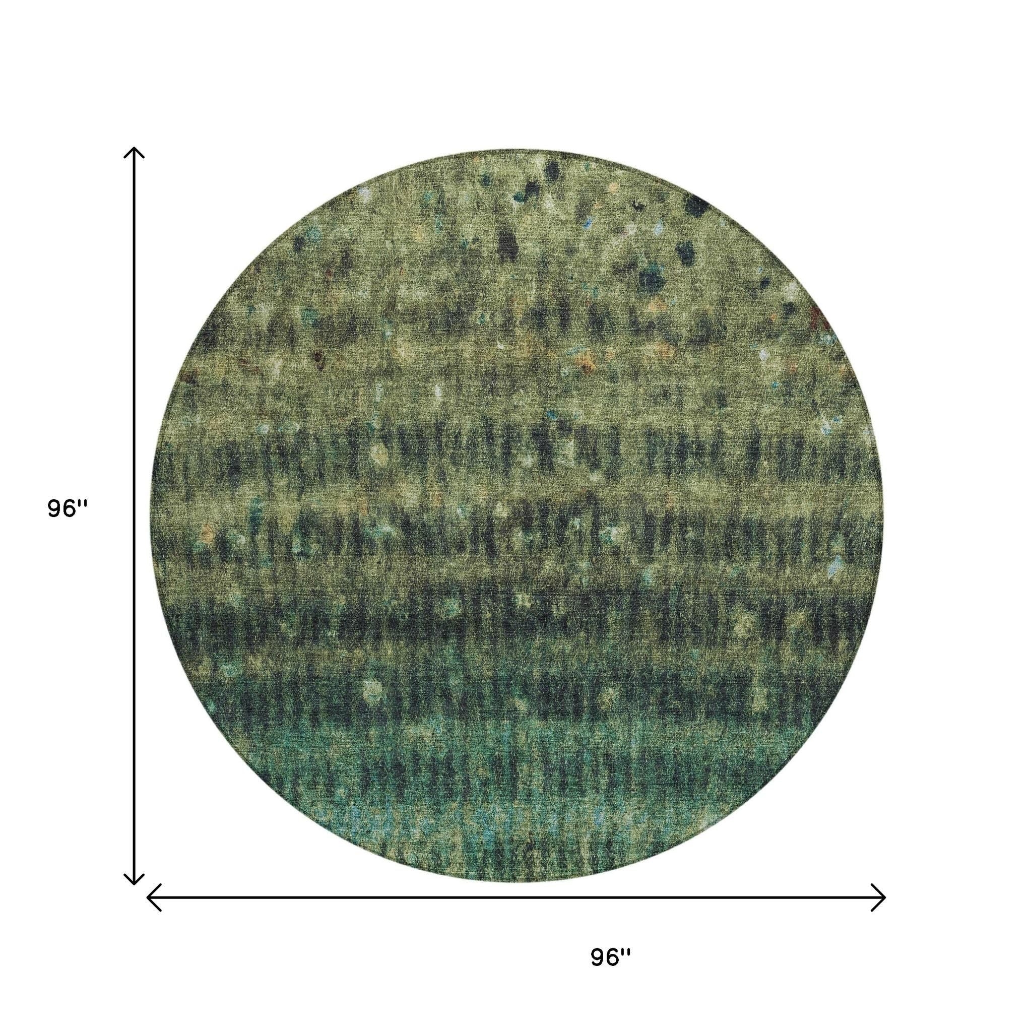 8' Fern Green And Gray Round Striped Washable Indoor Outdoor Area Rug