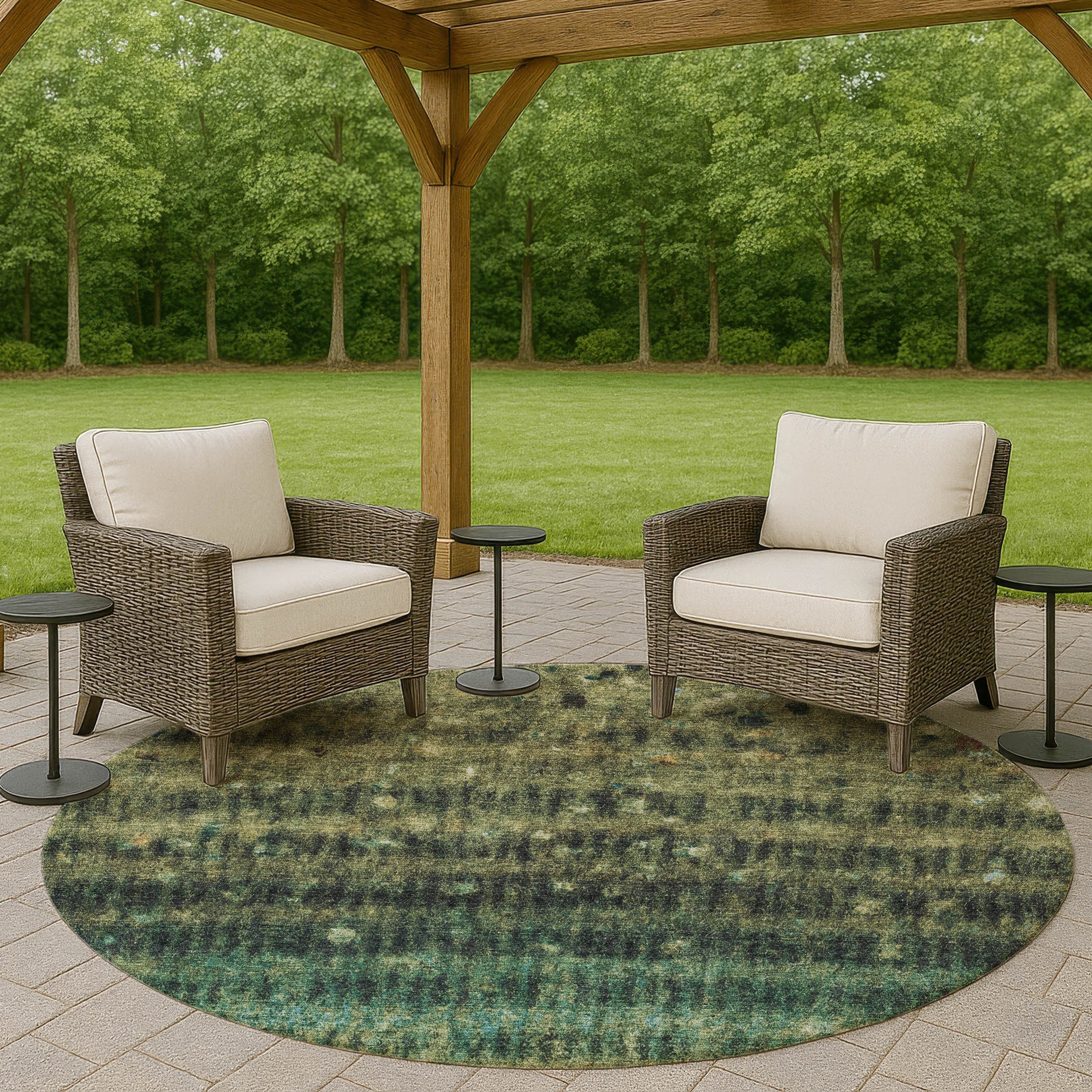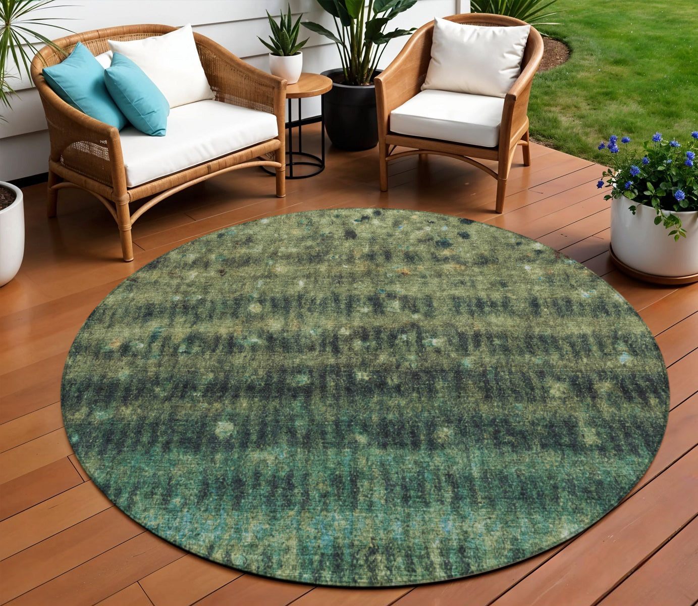 8' Fern Green And Gray Round Striped Washable Indoor Outdoor Area Rug Перейти к содержанию