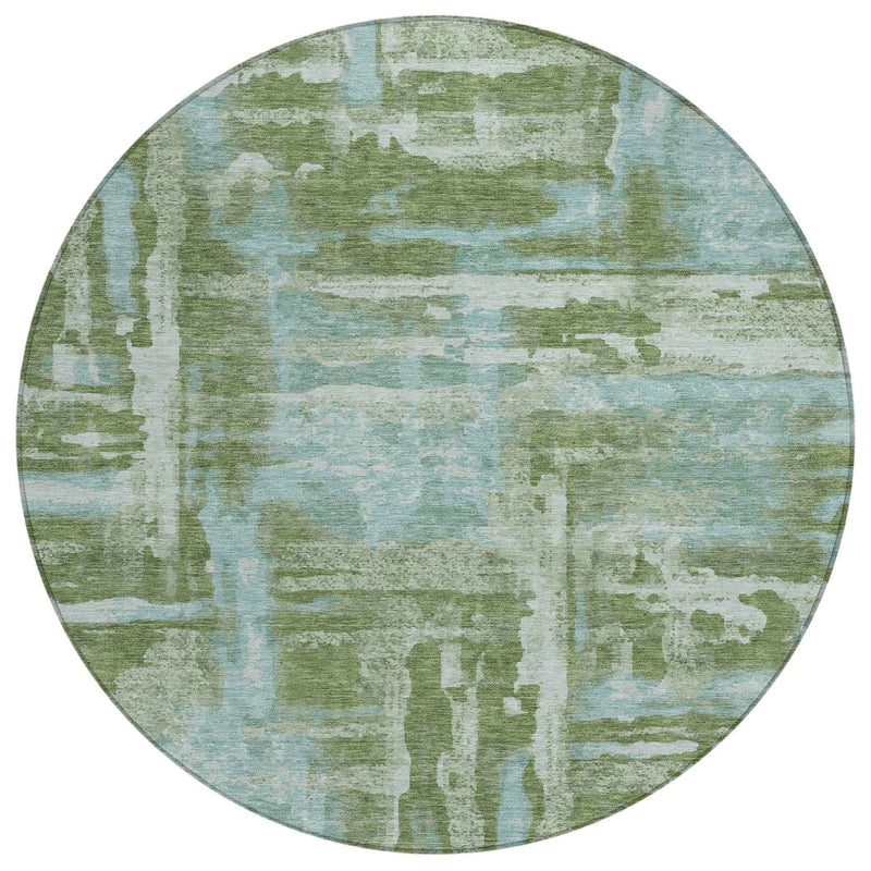 8' Fern Green And Sky Blue Round Abstract Washable Indoor Outdoor Area Rug