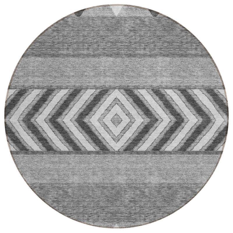 8' Gray Charcoal And Silver Round Southwestern Washable Indoor Outdoor Area Rug