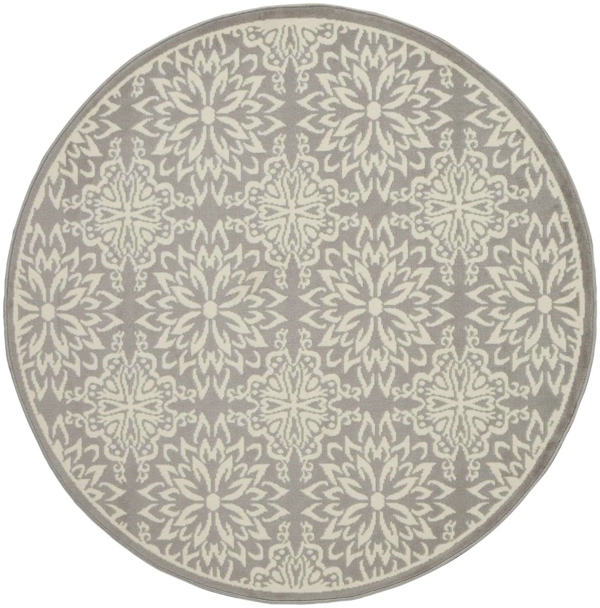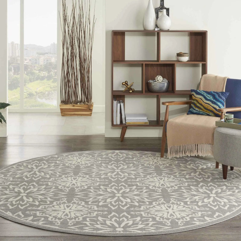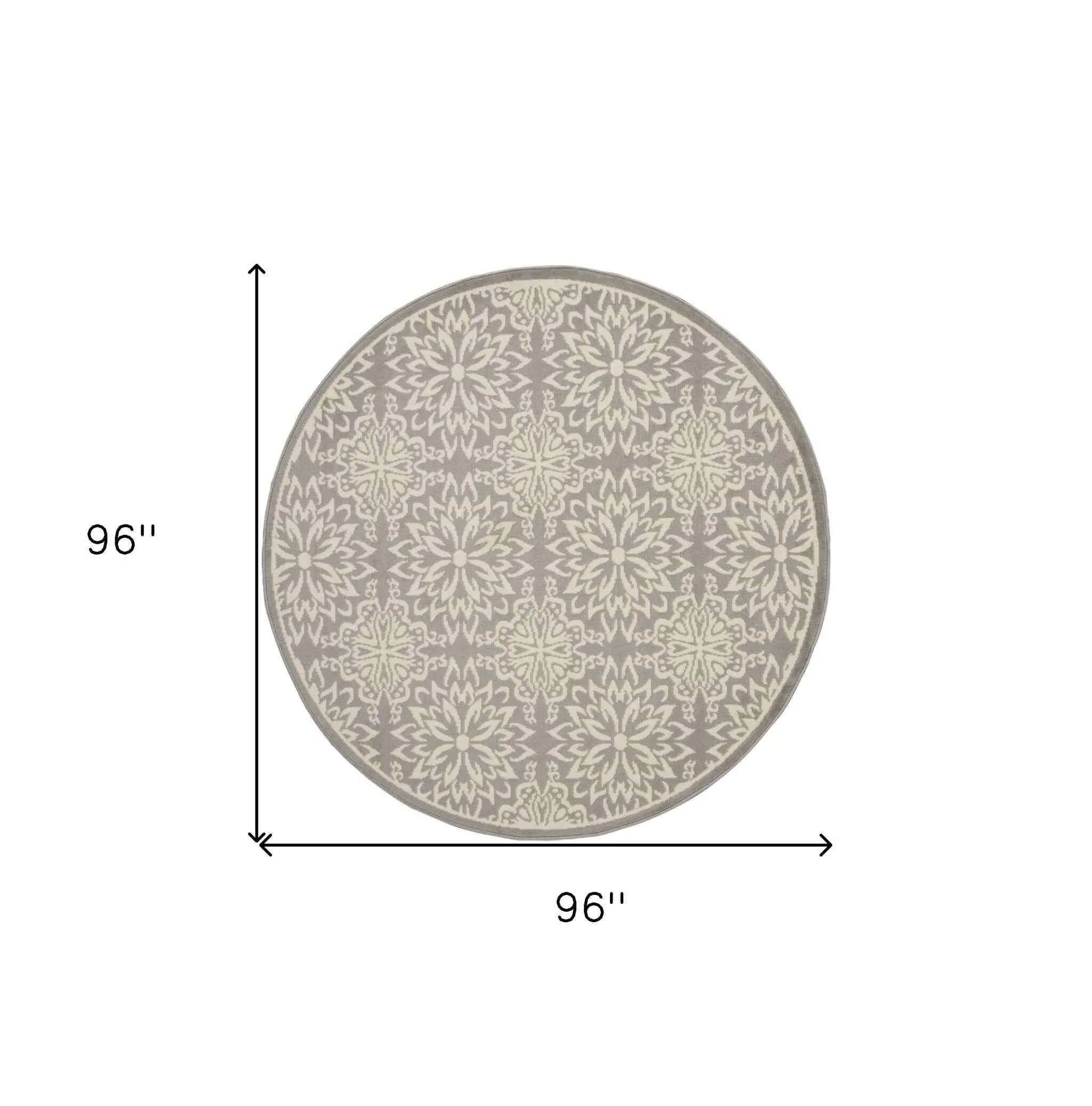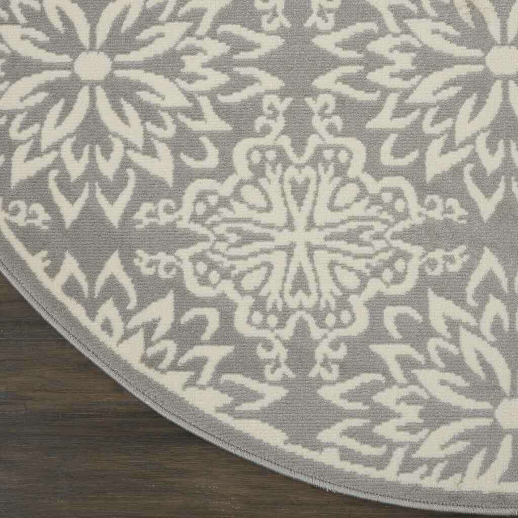 8' Gray Round Floral Power Loom Area Rug