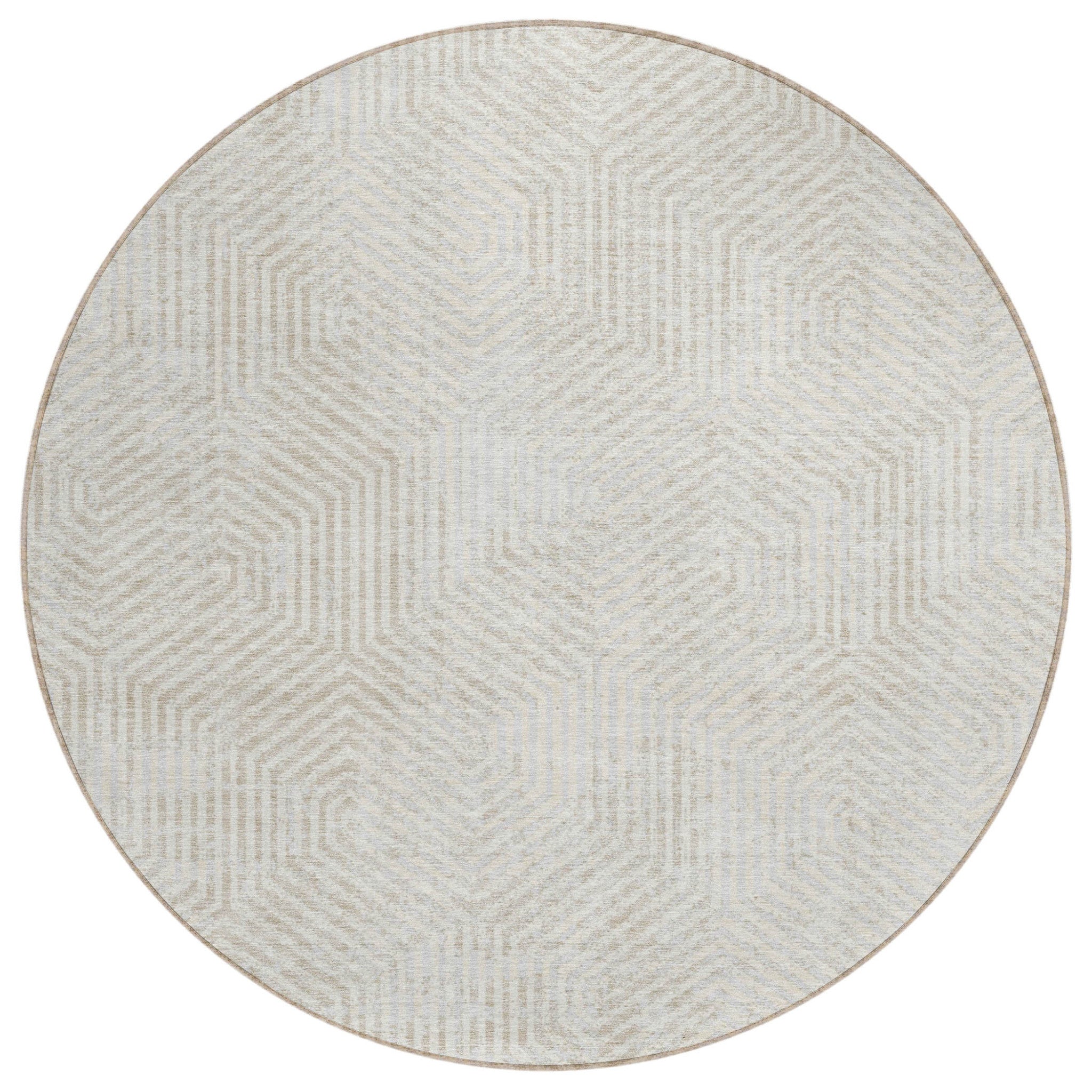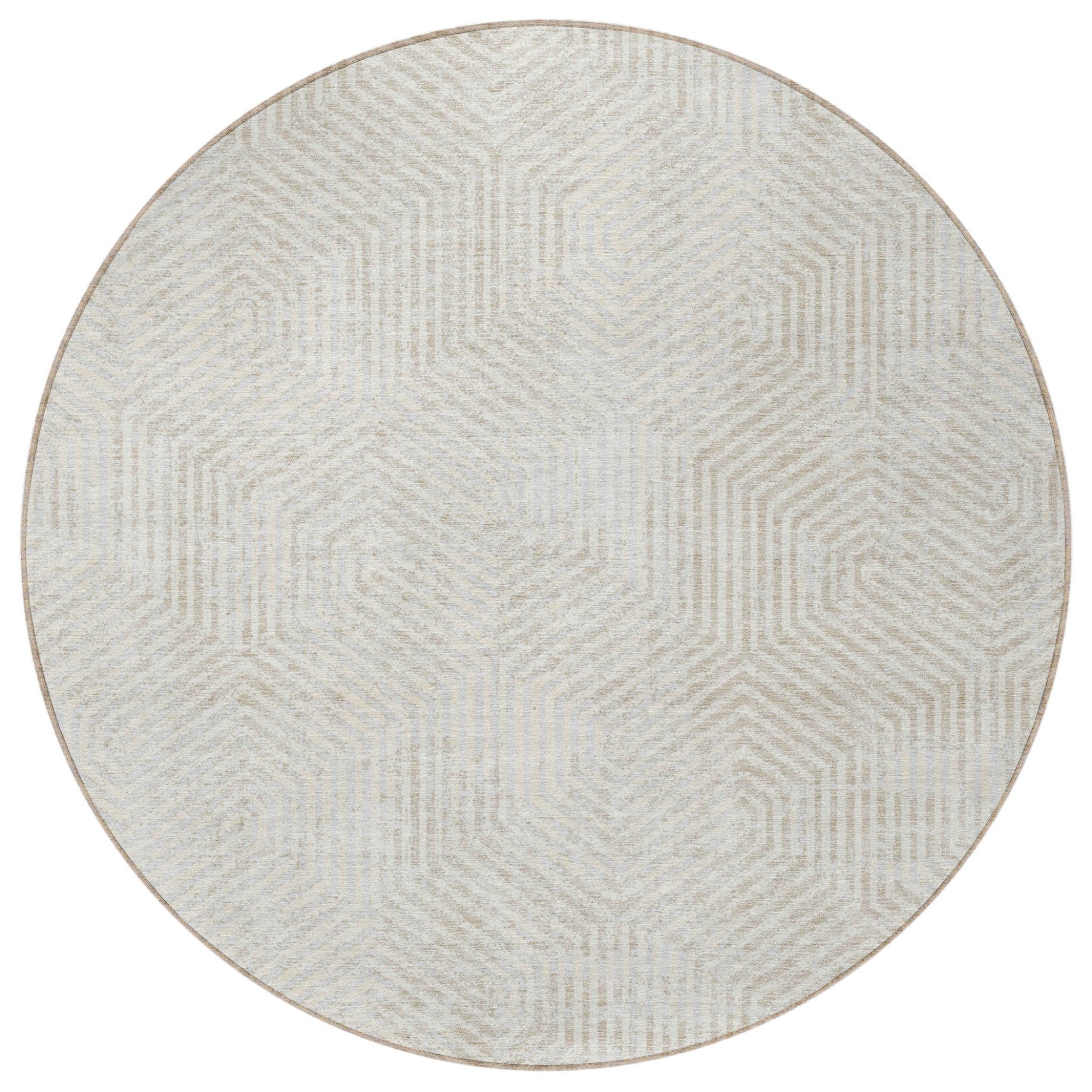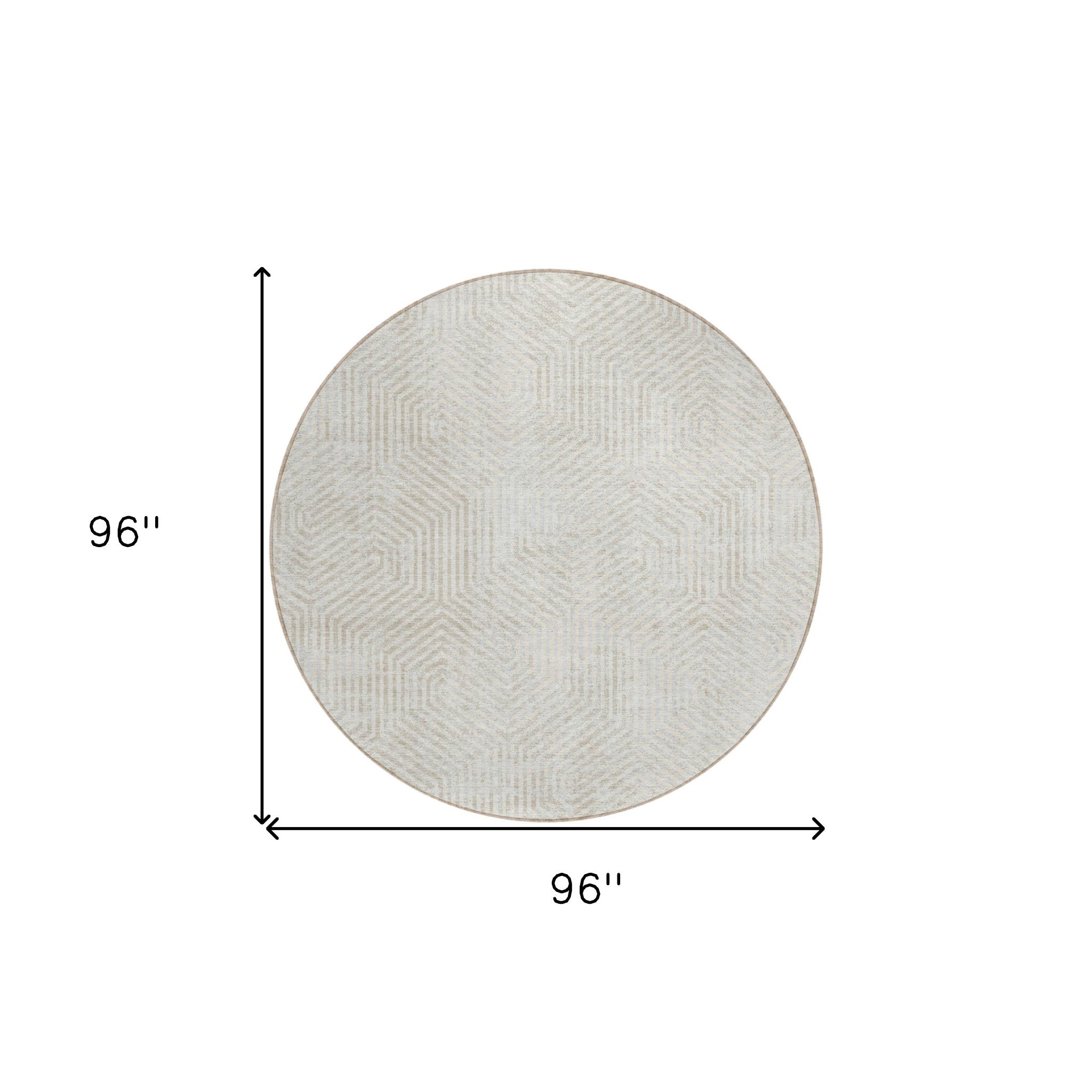 8' Ivory And Gray Round Geometric Washable Indoor Outdoor Area Rug