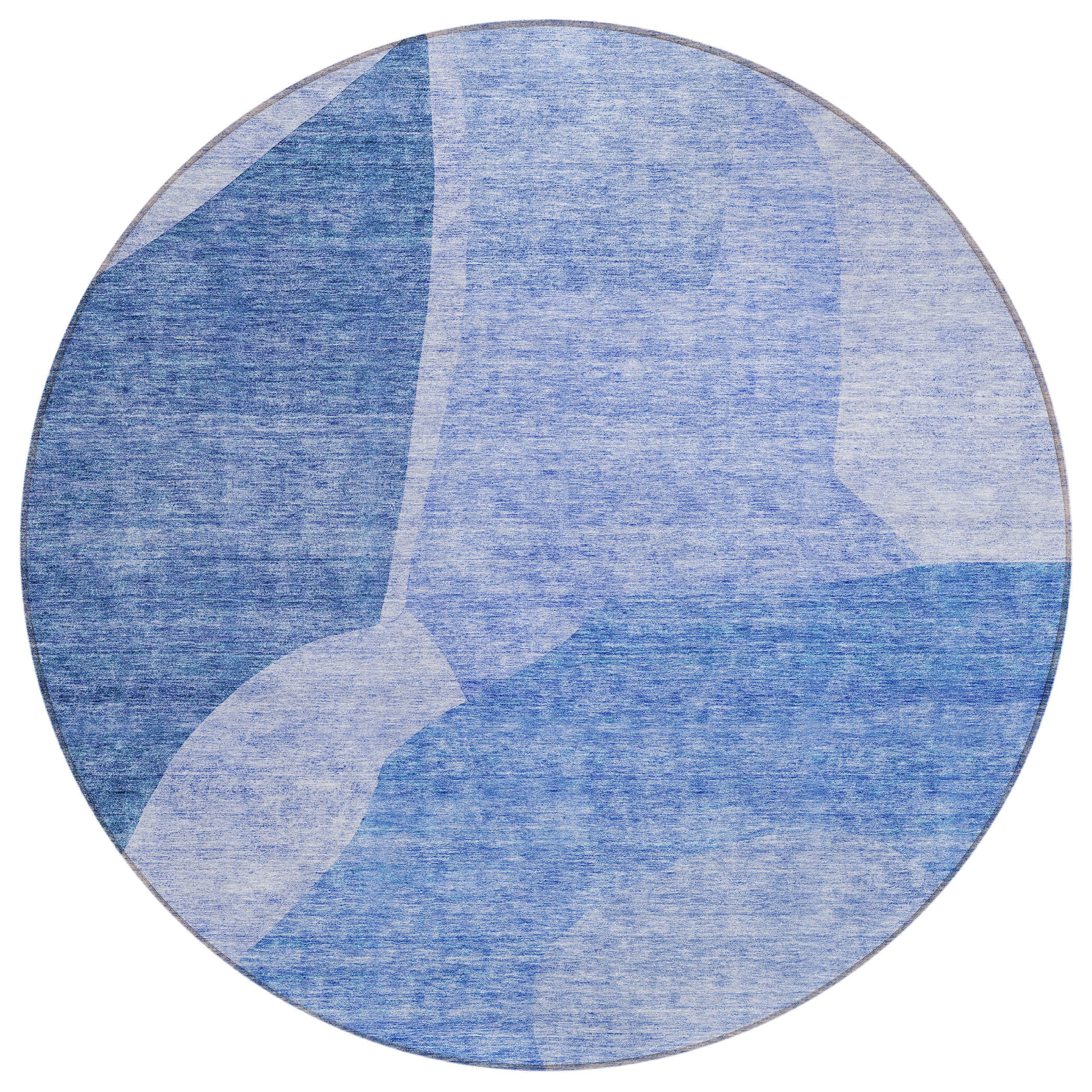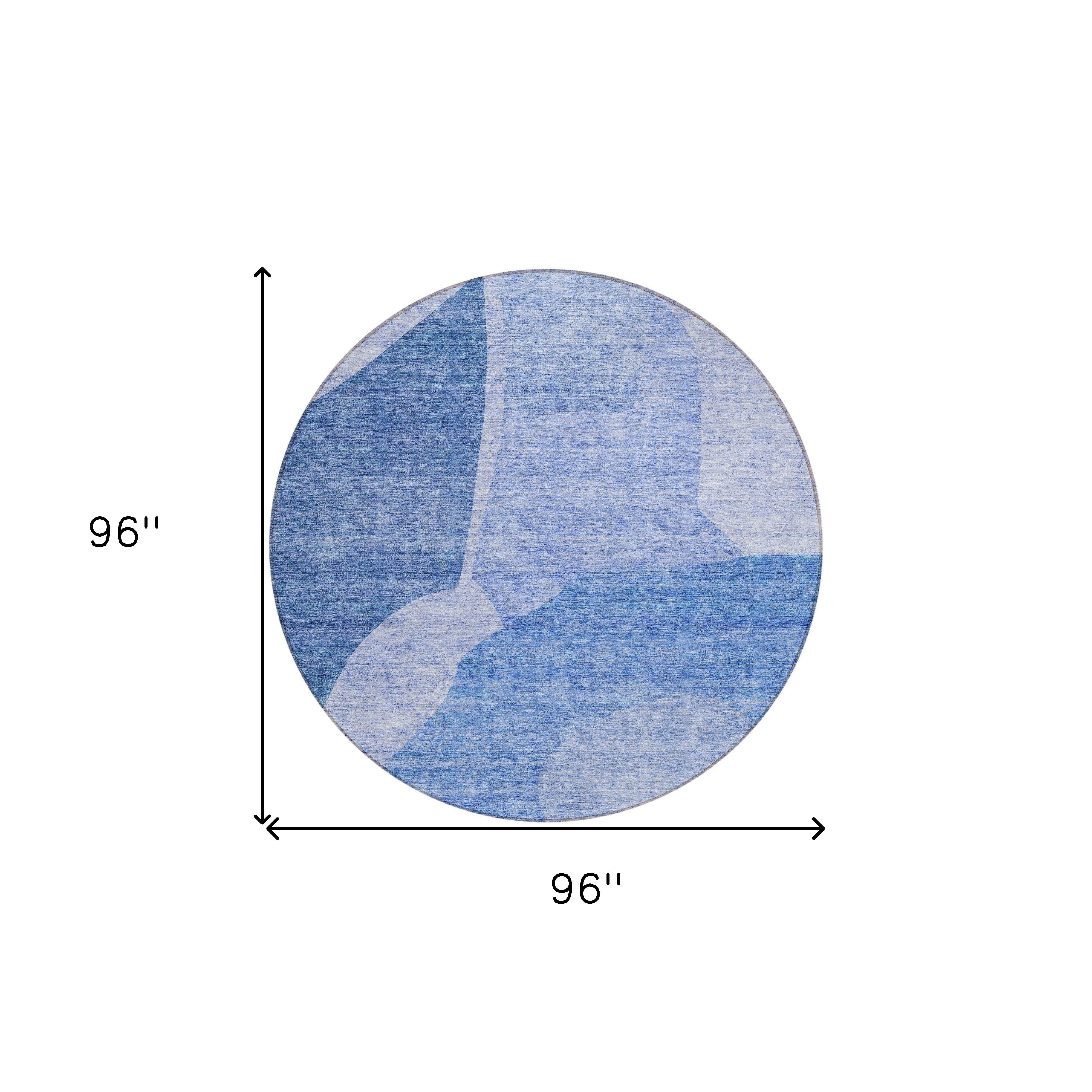 8' Navy Blue And Denim Blue Round Abstract Washable Indoor Outdoor Area Rug
