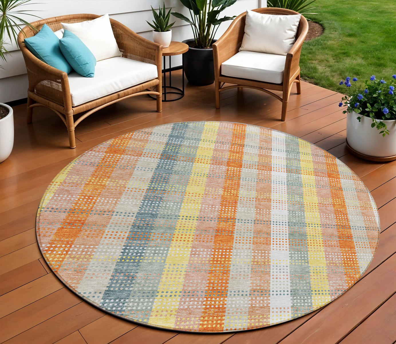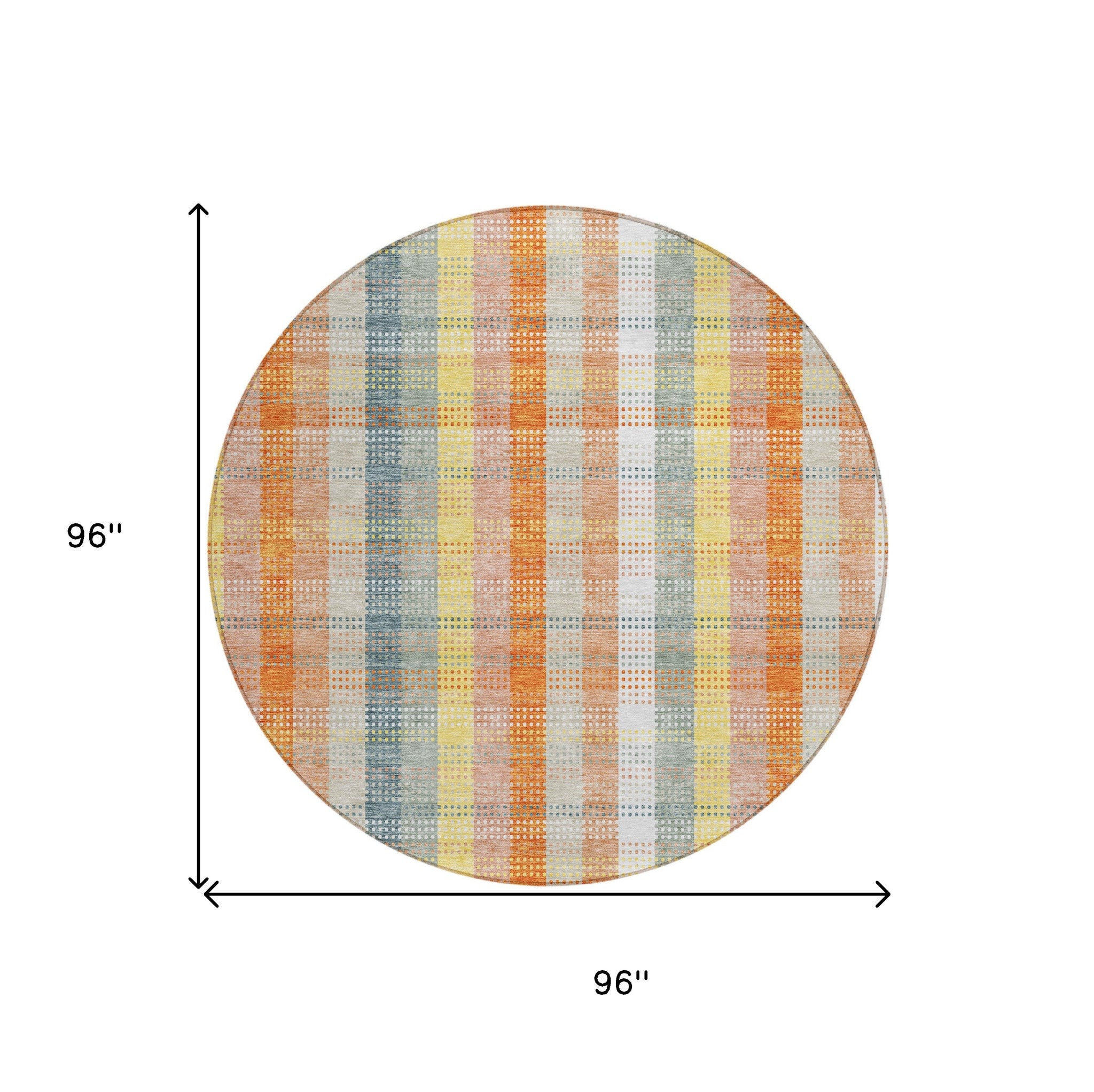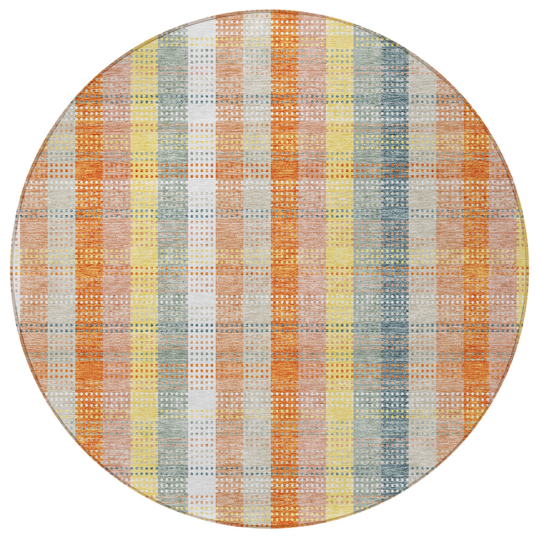 8' Peach Ivory And Orange Round Plaid Washable Indoor Outdoor Area Rug Перейти к содержанию