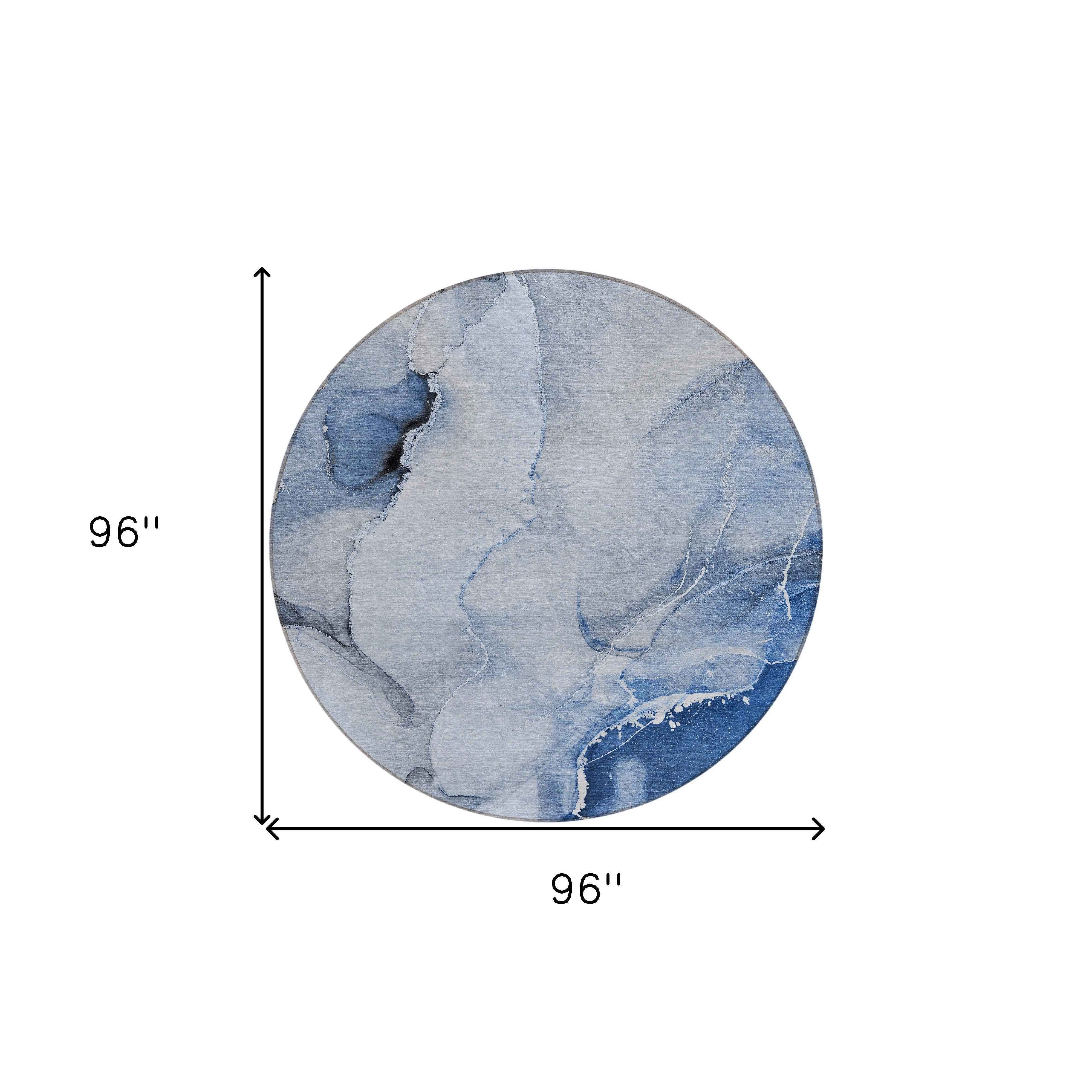 8' Round Blue and Gray Round Abstract Washable Non Skid Indoor Outdoor Area Rug