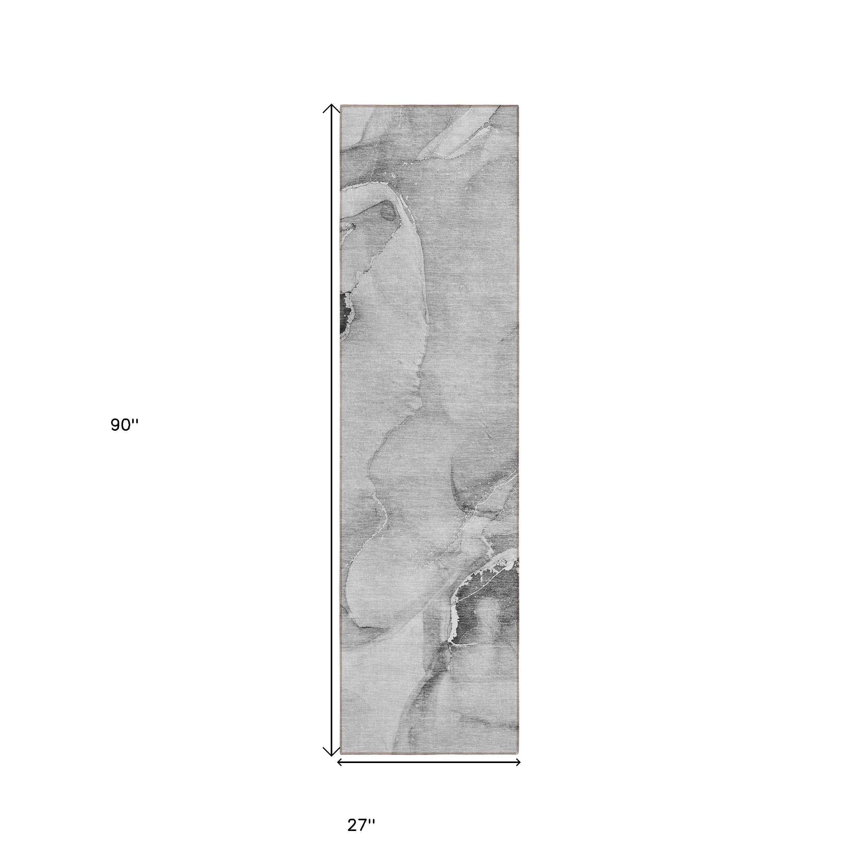 8' Runner Gray and Ivory Abstract Washable Non Skid Indoor Outdoor Runner Rug