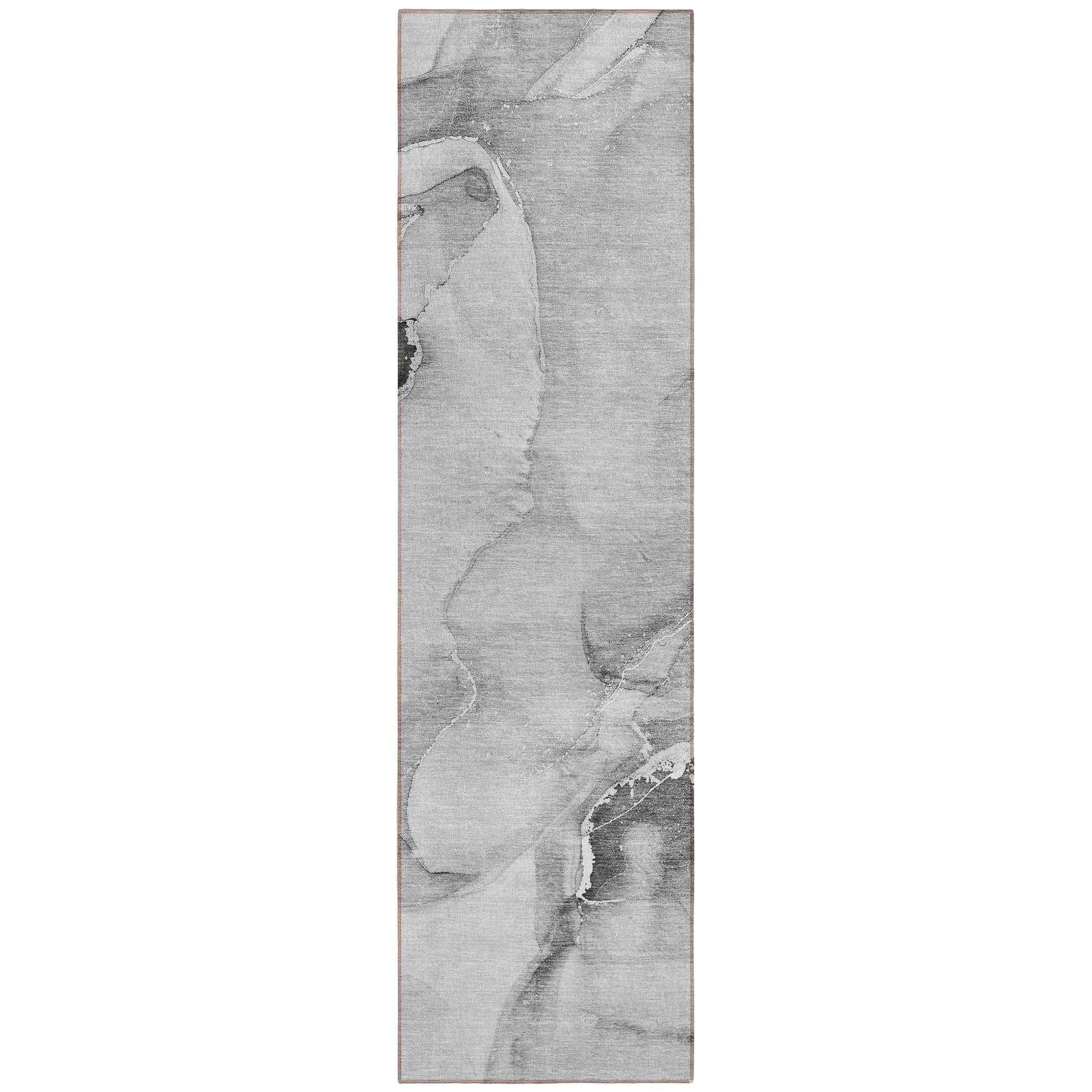 Set an inviting tone in your space with this 8-foot runner gray and ivory abstract washable stain resistant non skid indoor outdoor runner rug. This runner shaped rug features a abstract design in gray and ivory to give it visual interest. A classic shape marries with good looking design for your space ideal for spaces with kids and pets, this rug is stain resistant to help repel stains and spilled liquids. Area rugs help to give warmth and sense of home to your space. 27-inch H x 90-inch W x 0.19-inch D