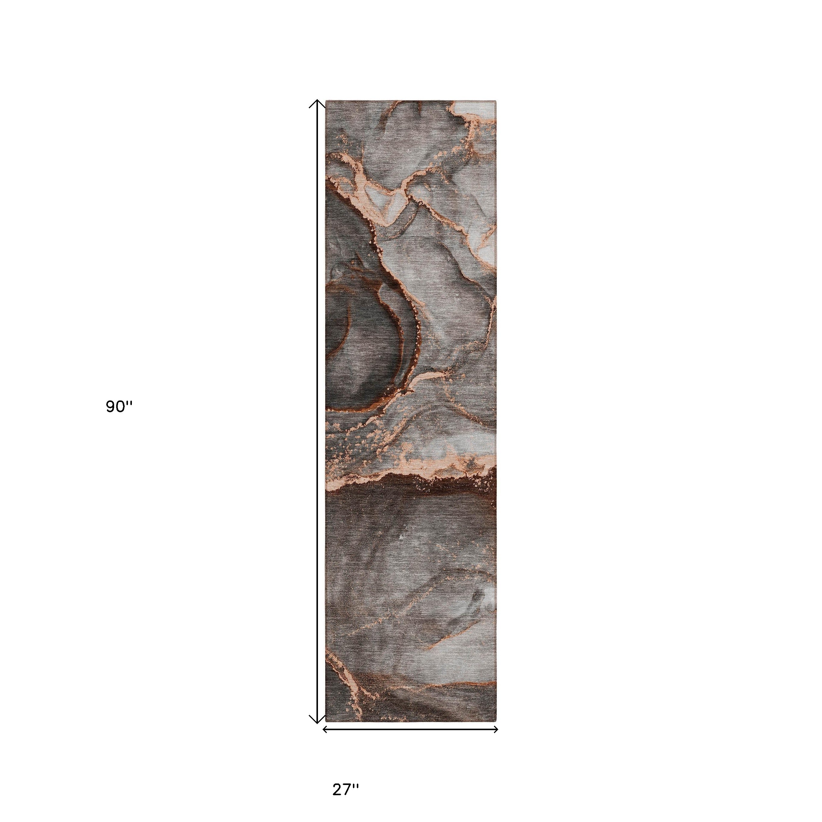 8' Runner Peach Abstract Washable Non Skid Indoor Outdoor Runner Rug