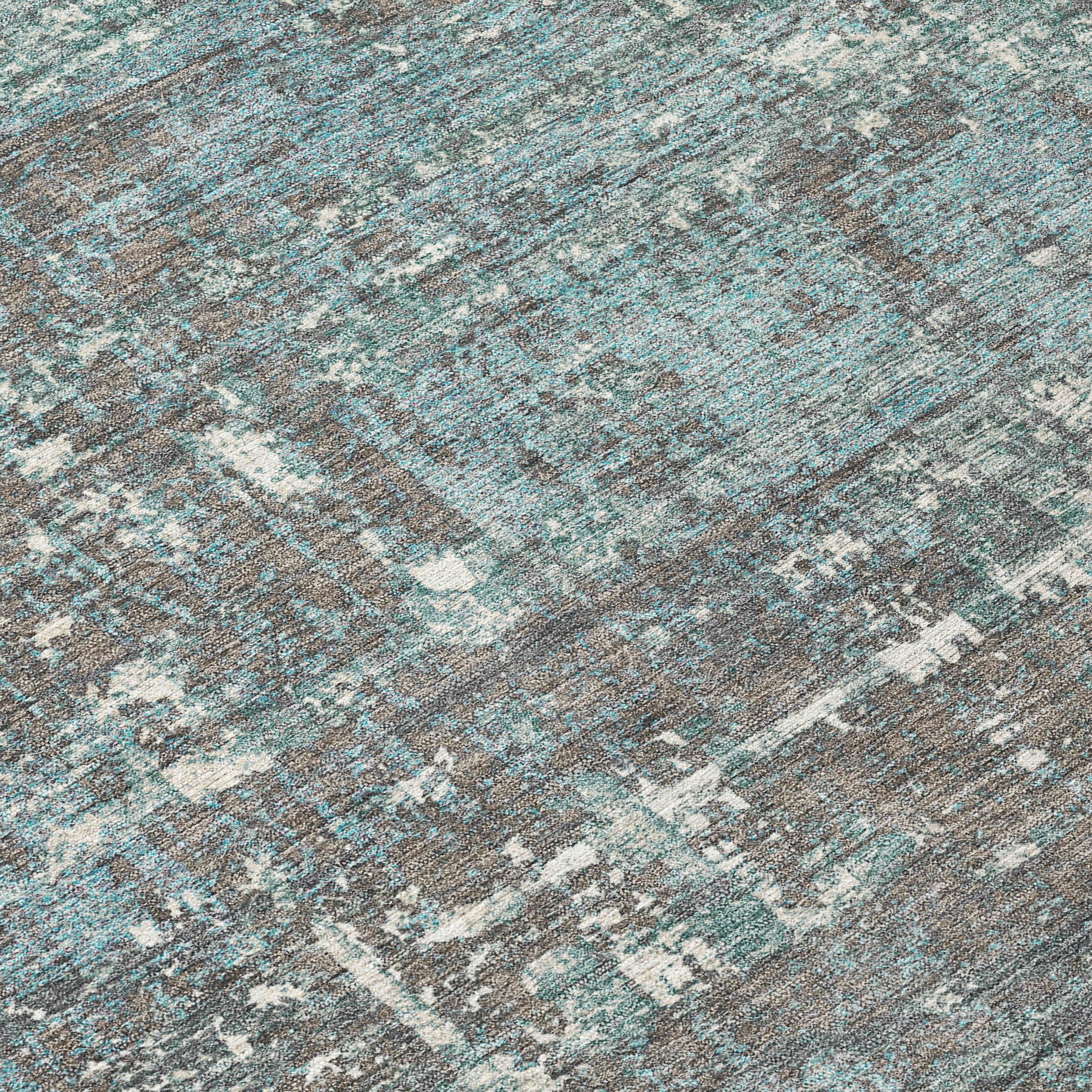 This 8-foot taupe and teal blue round geometric washable indoor outdoor area rug, is a great way to add warmth to a room. This geometric round shaped rug features a geometric pattern in taupe and teal blue that combines a good looking print with a unique and updated shape. The mix of shape, color, and design gives this rug refreshing visual interest. Ideal for outdoor spaces or high traffic areas with kids and pets, this rug is made from heavy duty polyester that is stain resistant to help repel water, dirt, and stains. Versatile in use, durable, and easy to maintain, this rug is an ideal solution to add a decorative and inviting touch to your indoor or outdoor space. 96-inch h x 96-inch w x 0.19-inch d.