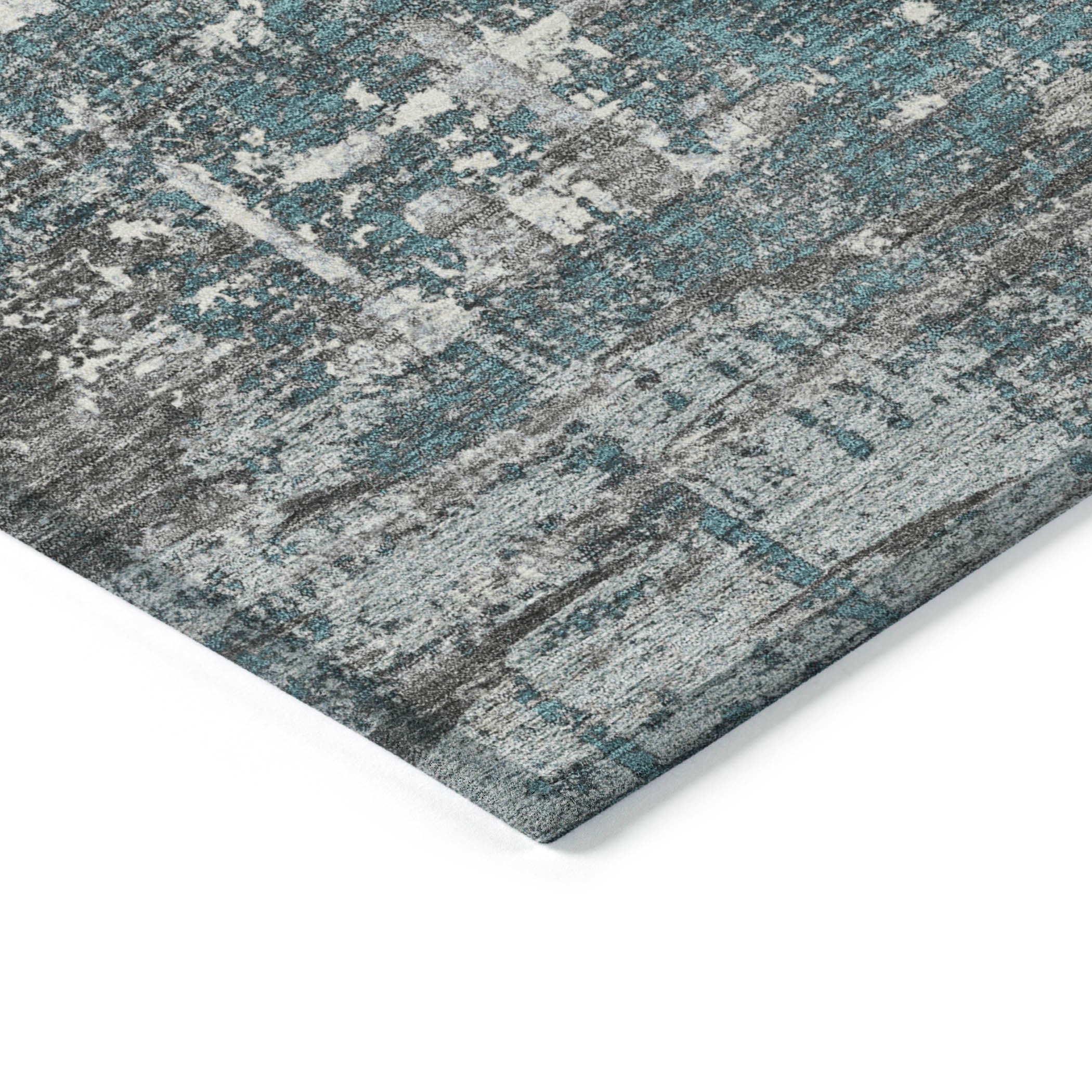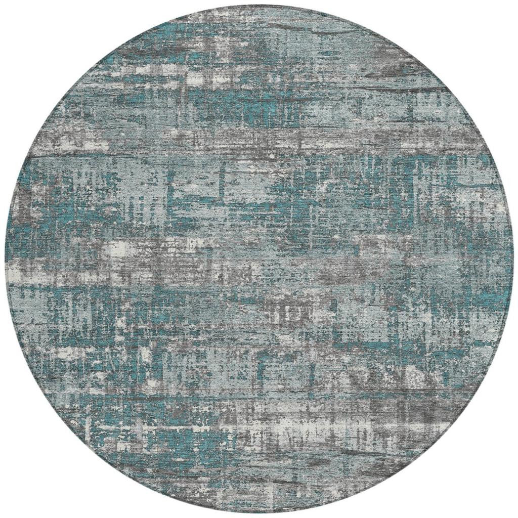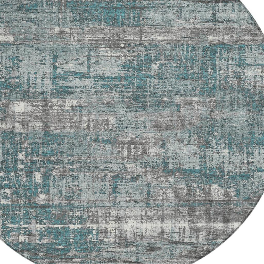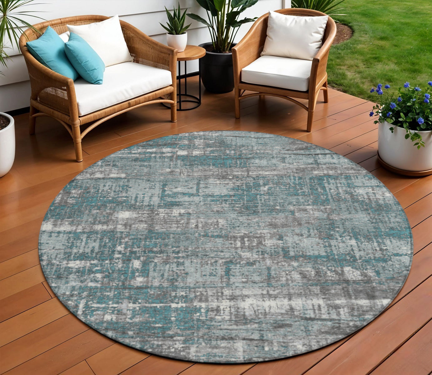 8' Teal Blue And Gray Round Geometric Washable Indoor Outdoor Area Rug