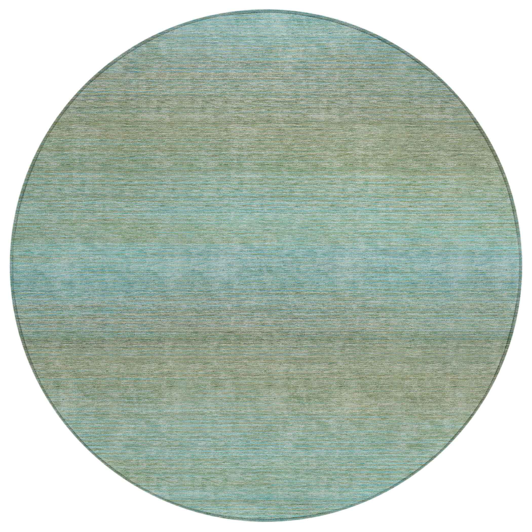 8' Teal Blue Round Striped Washable Indoor Outdoor Area Rug