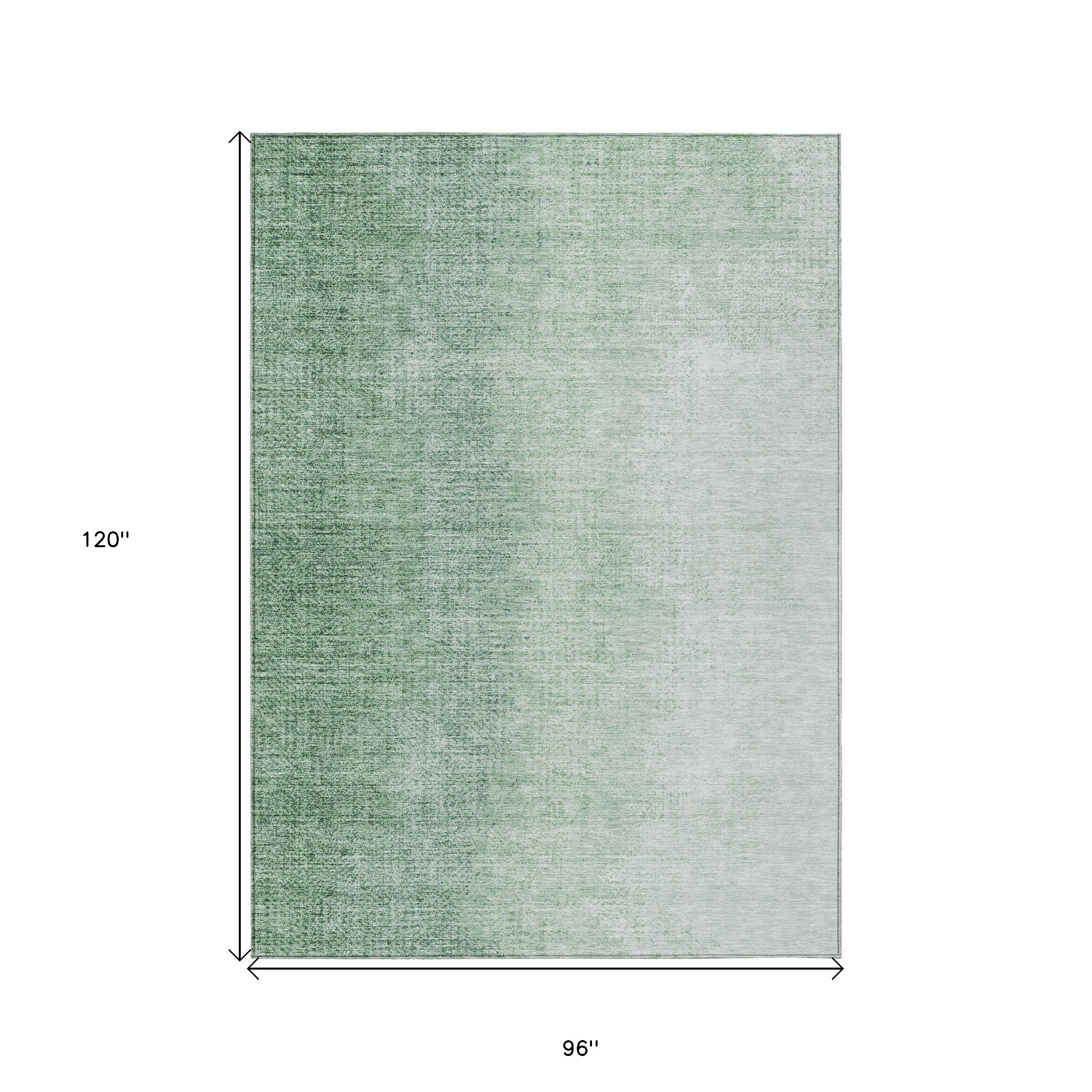 8' X 10' Artichoke Green And Fern Green Abstract Washable Indoor Outdoor Area Rug