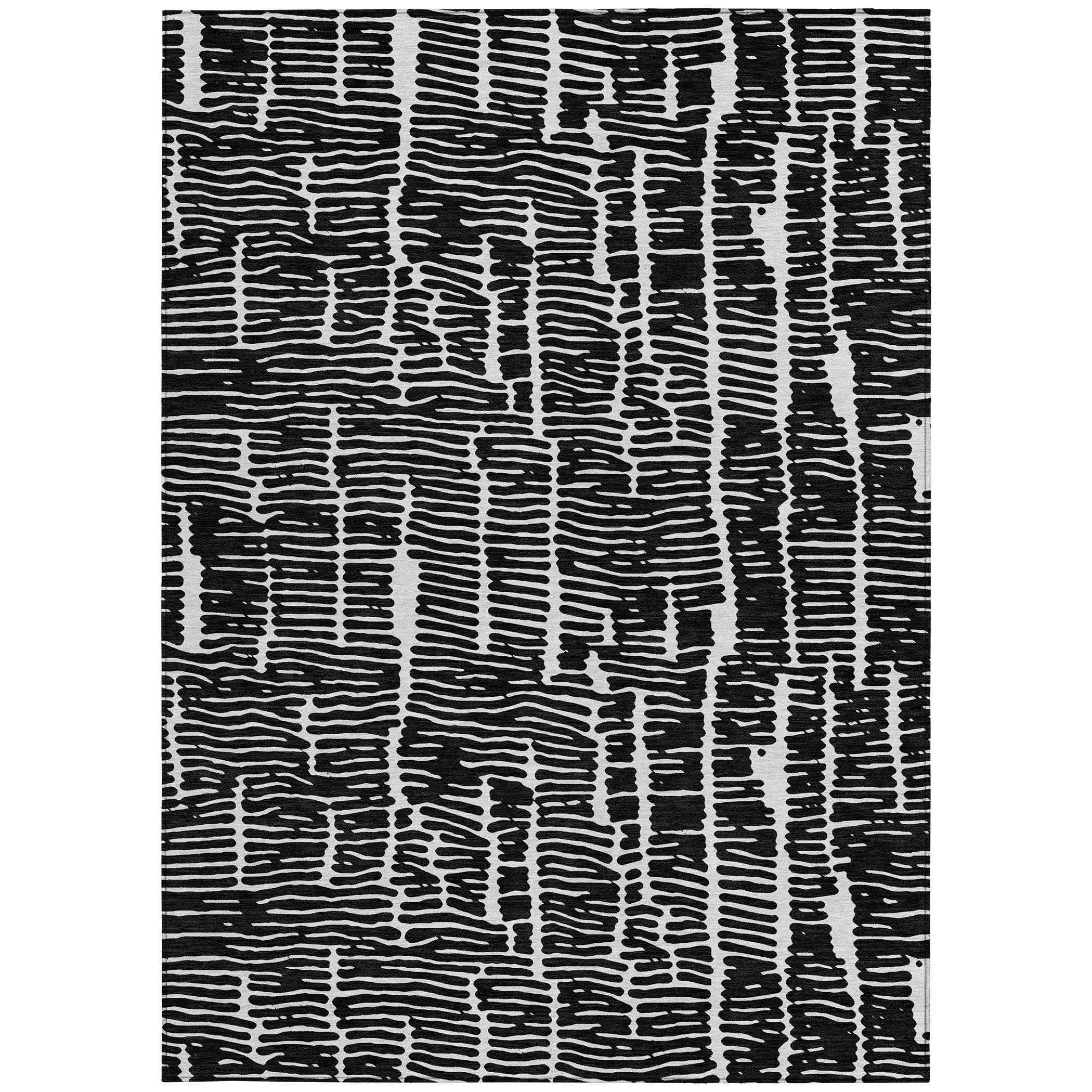 8' X 10' Black And Ivory Abstract Washable Indoor Outdoor Area Rug
