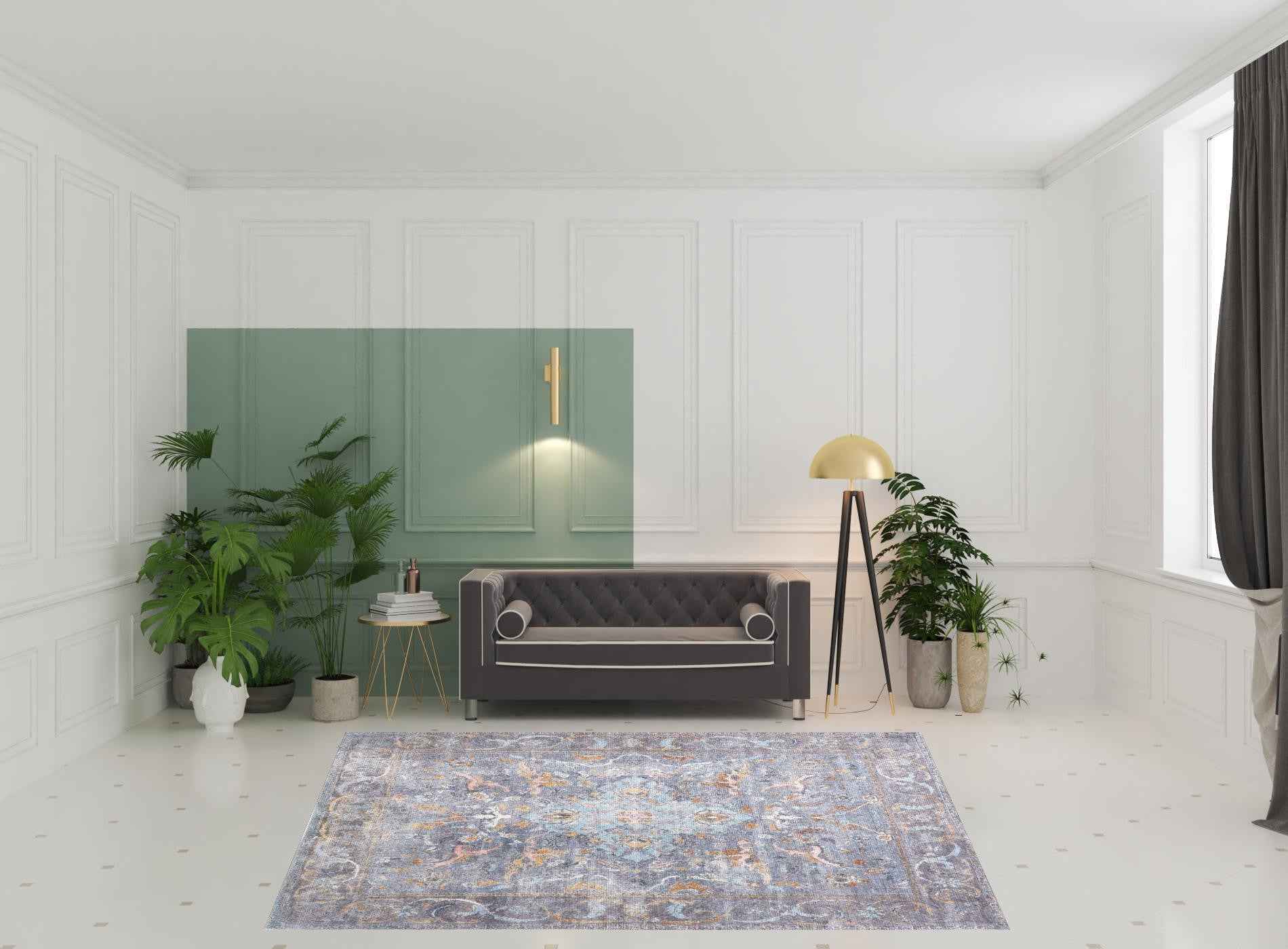 Add great coloration and comfortable texture to your space with this 8' x 10' blue gray and orange floral area rug. This rectangle shaped rug features a floral design in blue gray and orange to give it visual interest. A classic shape marries with good looking design for your space This superior Turkish rug represents the highest quality and is built to last. Place this area rug against a hardwood or tile floor and it will enliven your living space with style and sophistication. 0.08" H x 94" W x 118" D
