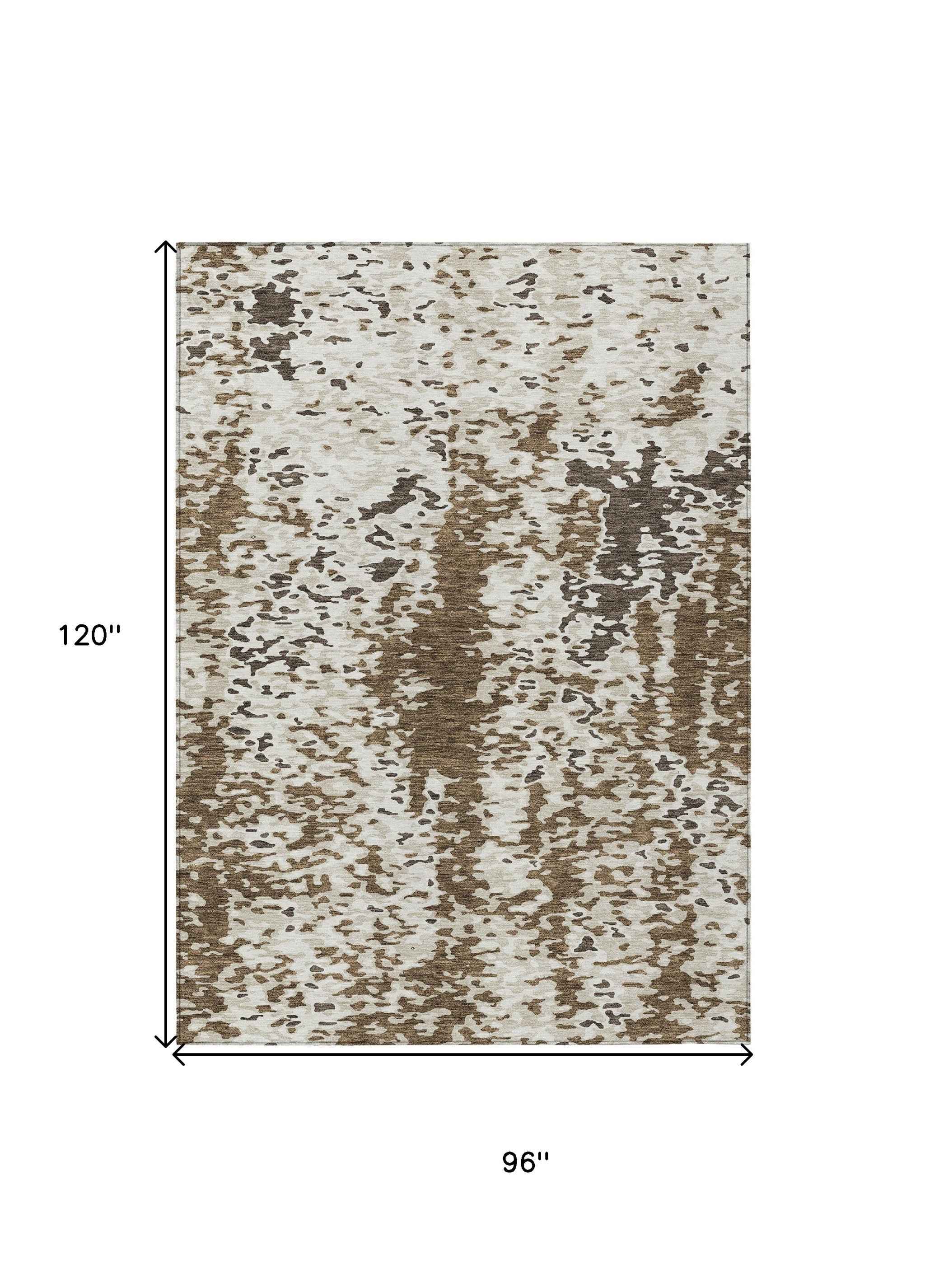 8' X 10' Brown And Ivory Abstract Washable Indoor Outdoor Area Rug