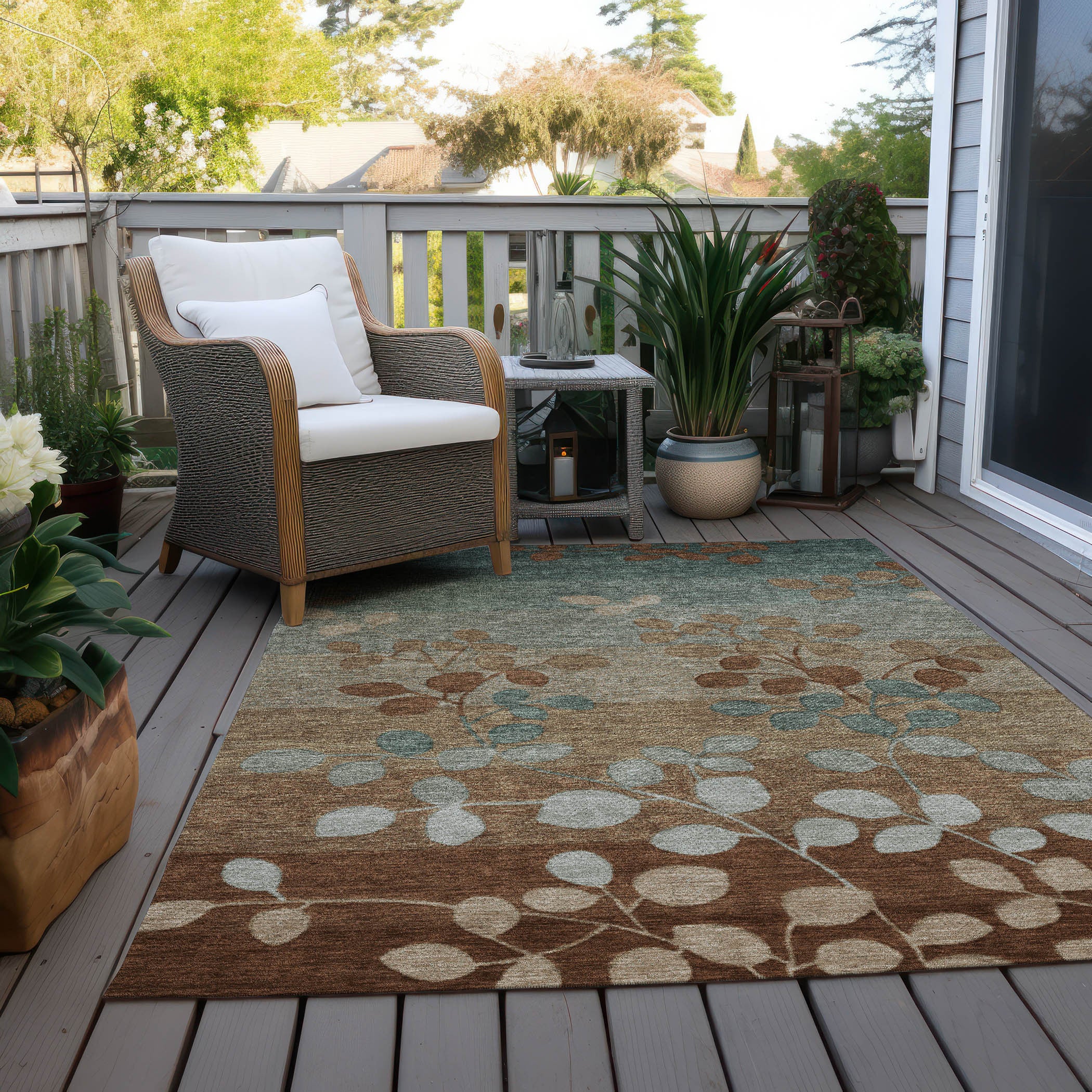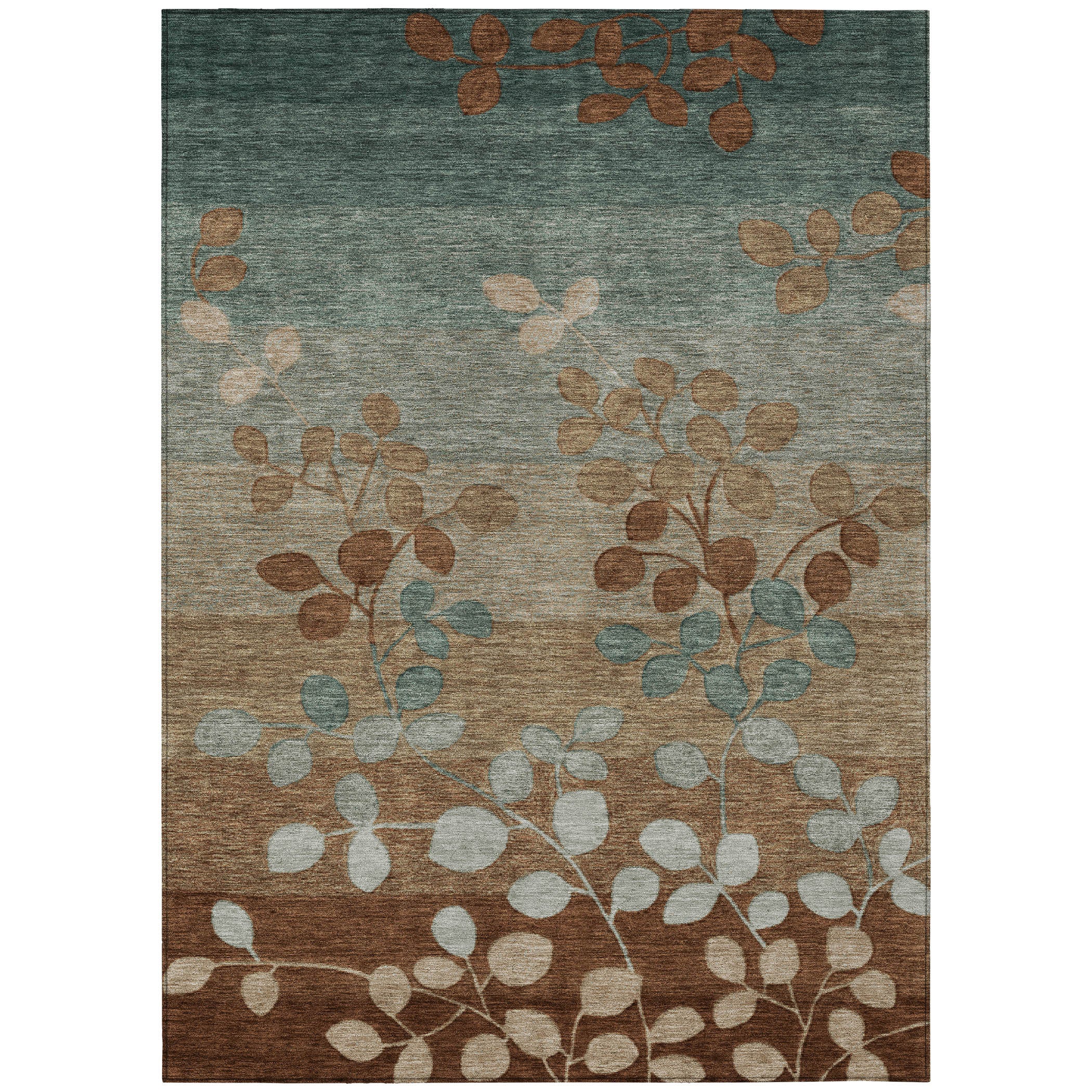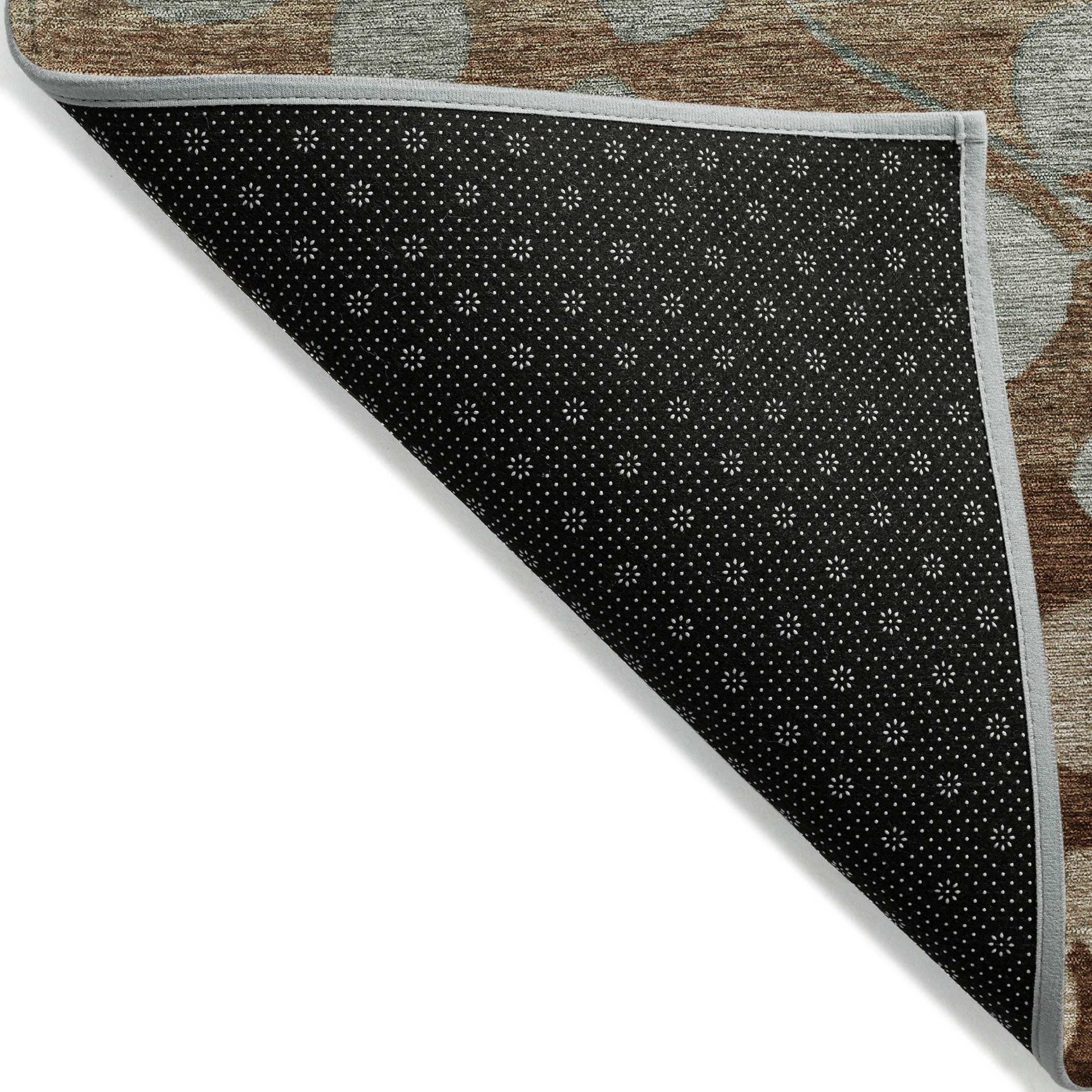 8' X 10' Brown And Teal Blue Floral Washable Indoor Outdoor Area Rug