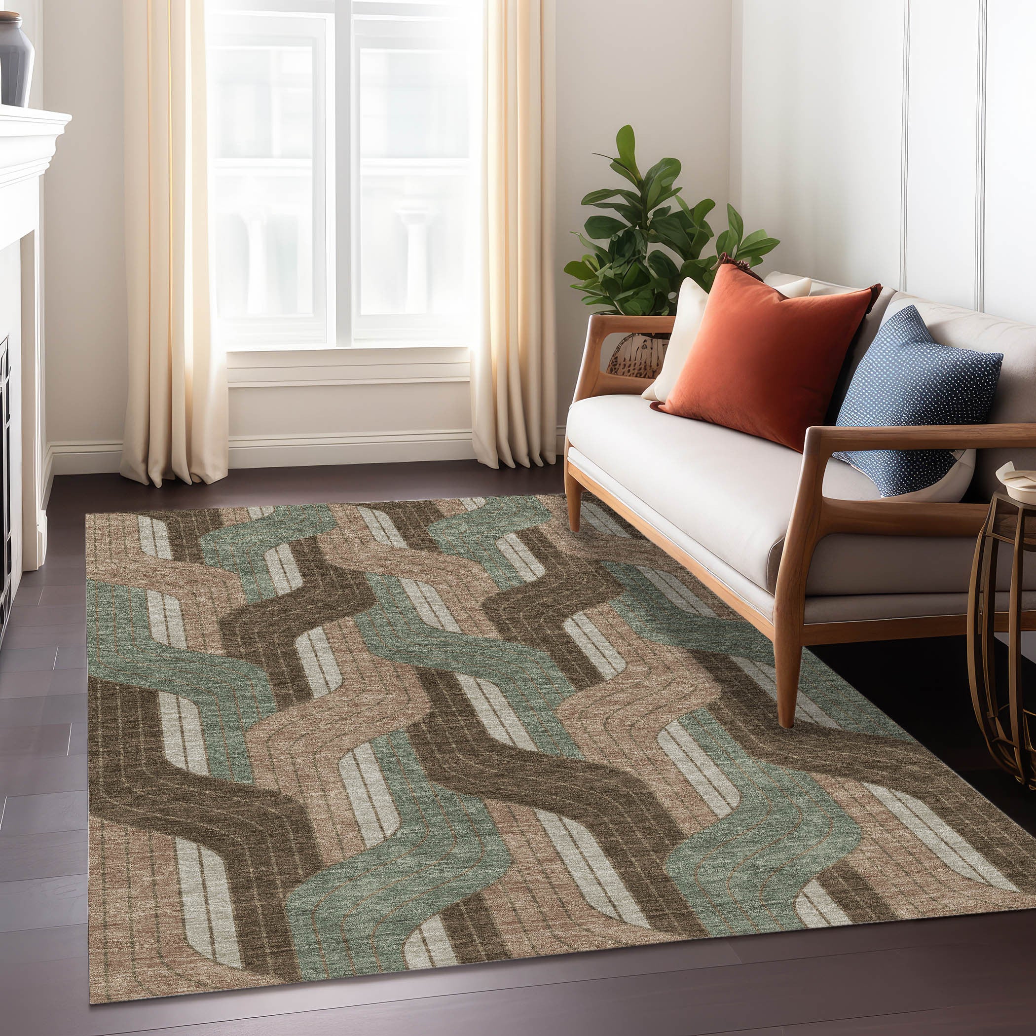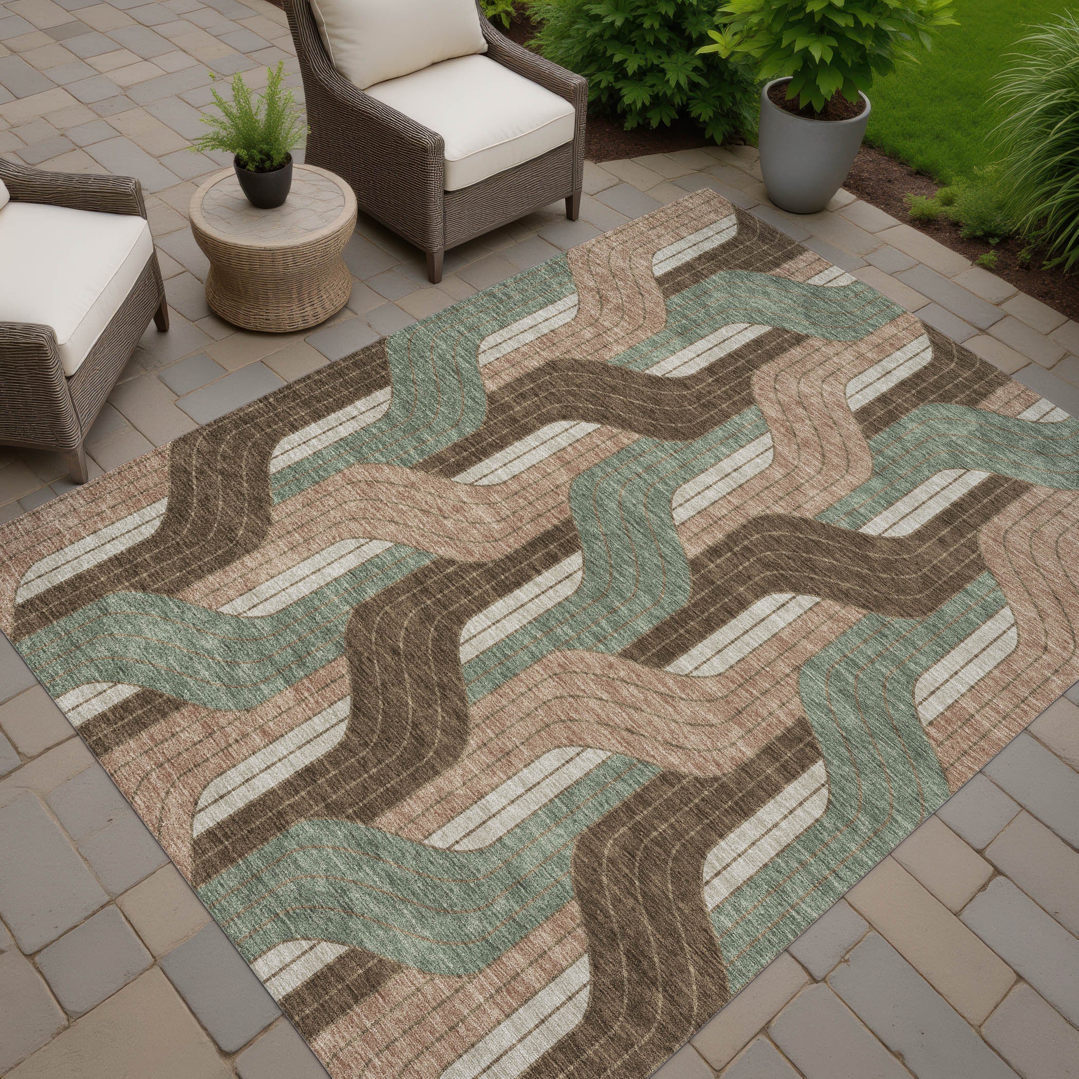 8' X 10' Chocolate Beige And Taupe Striped Washable Indoor Outdoor Area Rug Перейти к содержанию