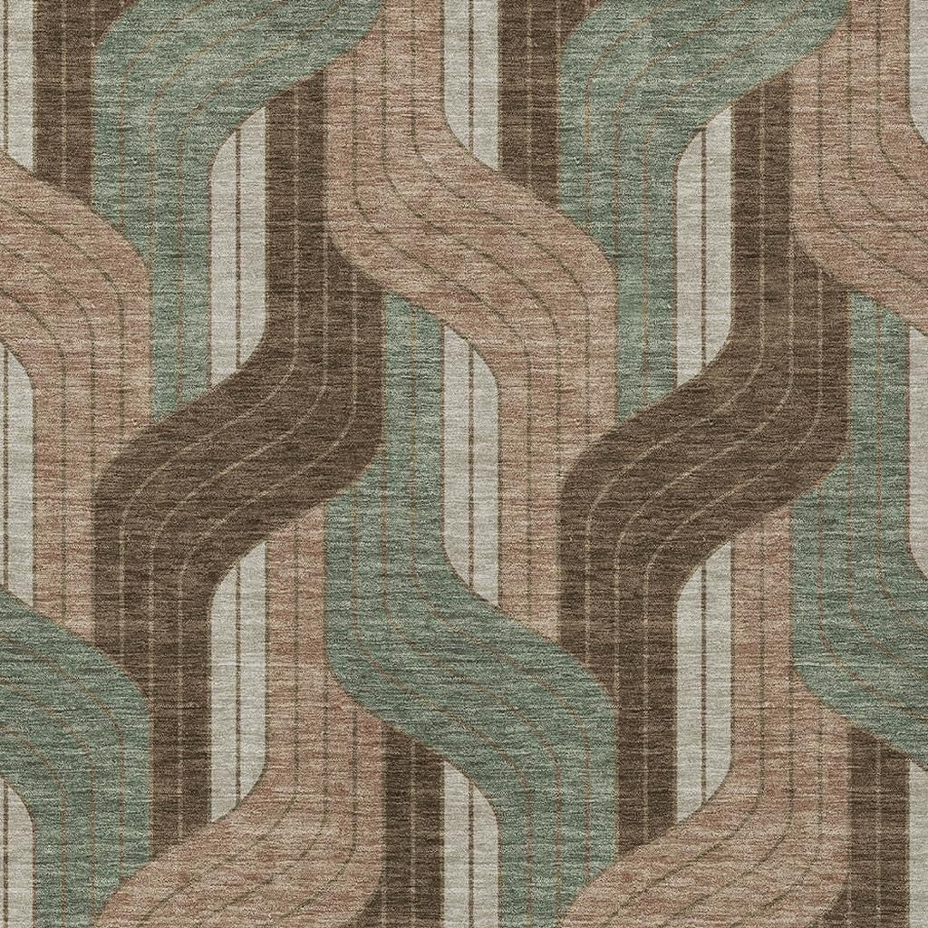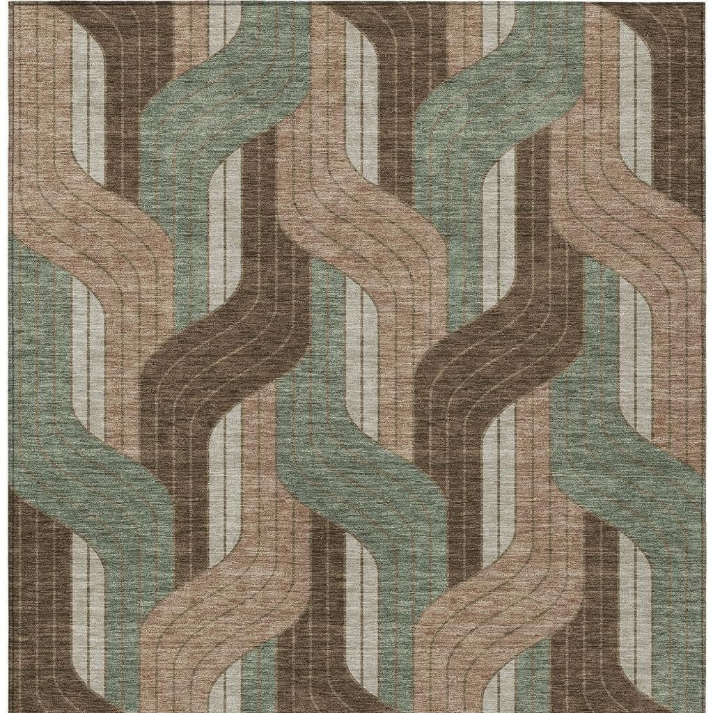 8' X 10' Chocolate Beige And Taupe Striped Washable Indoor Outdoor Area Rug