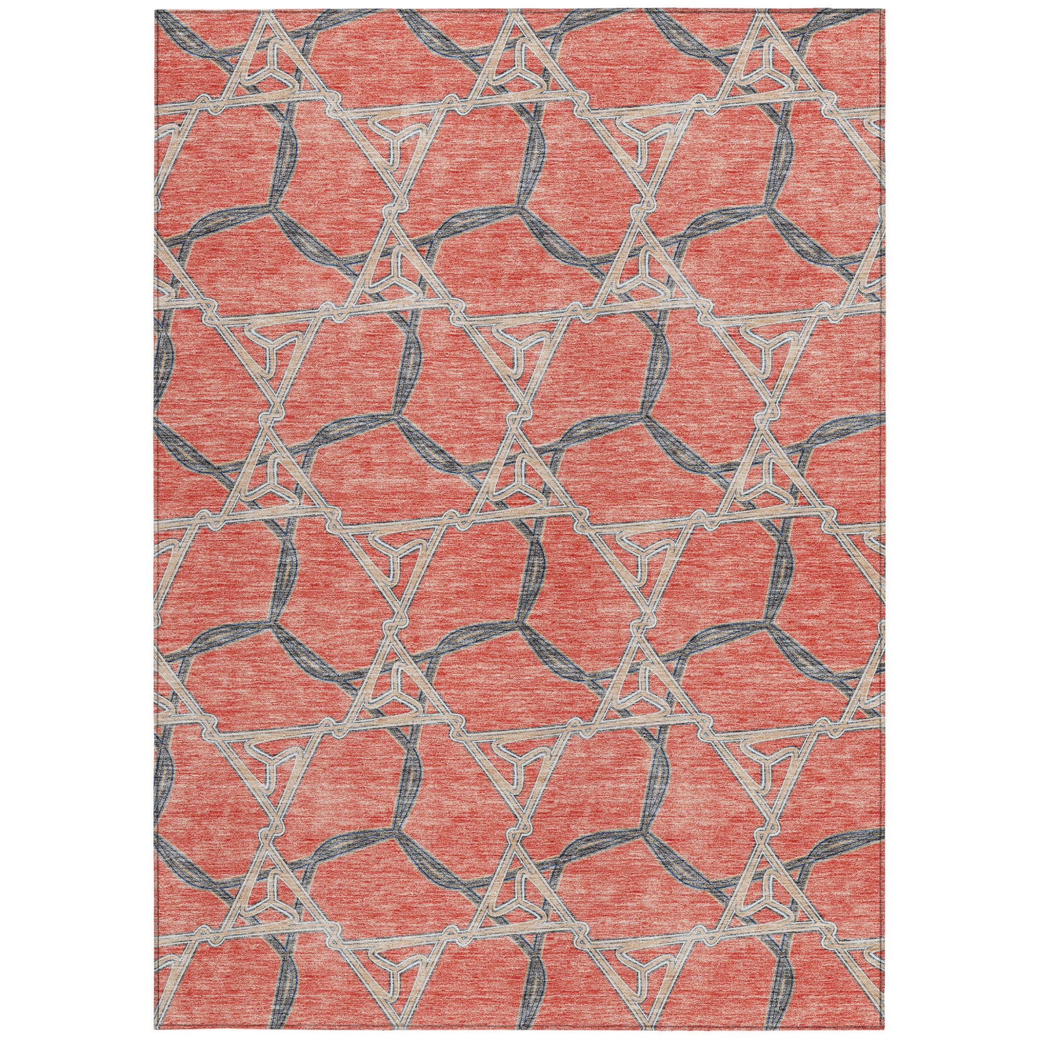 This 8-foot x 10-foot coral and taupe geometric washable indoor outdoor area rug, is a great way to add warmth to a room. This rectangle shaped rug features a geometric design that will work well both indoors or out. A classic shape marries with good looking design for your living room, hall, bedroom, porch, patio, or poolside. Ideal for outdoor spaces or high traffic areas with kids and pets, this rug is made from heavy duty polyester that is stain resistant to help repel water, dirt, and stains. Versatile in use, durable, and easy to maintain, this rug is an ideal solution to add a decorative and inviting touch to your indoor or outdoor space. 96-inch h x 120-inch w x 0.19-inch d.