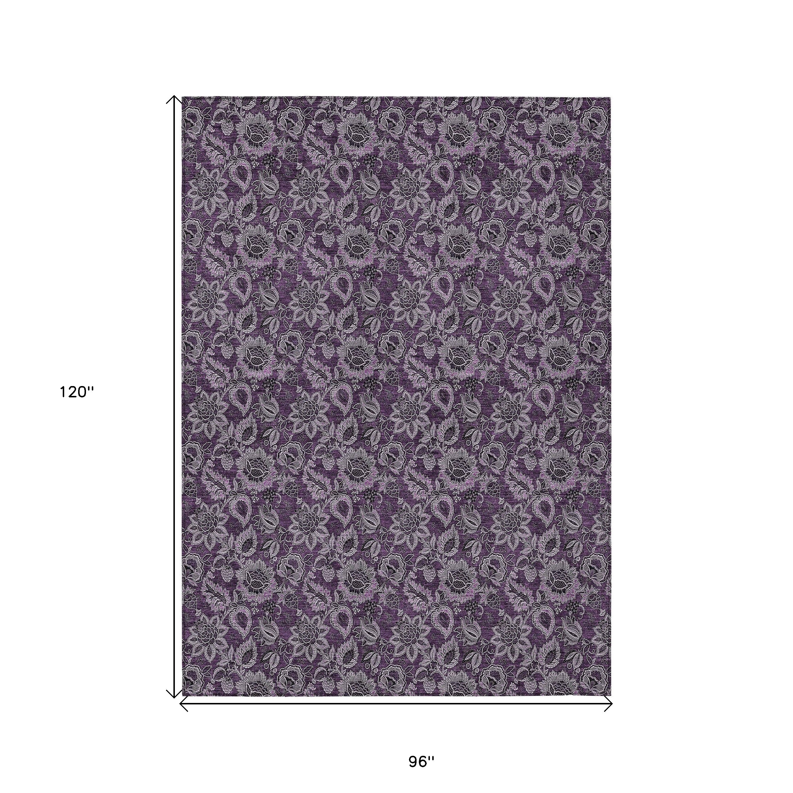 8' X 10' Eggplant Purple And Lilac Floral Washable Indoor Outdoor Area Rug