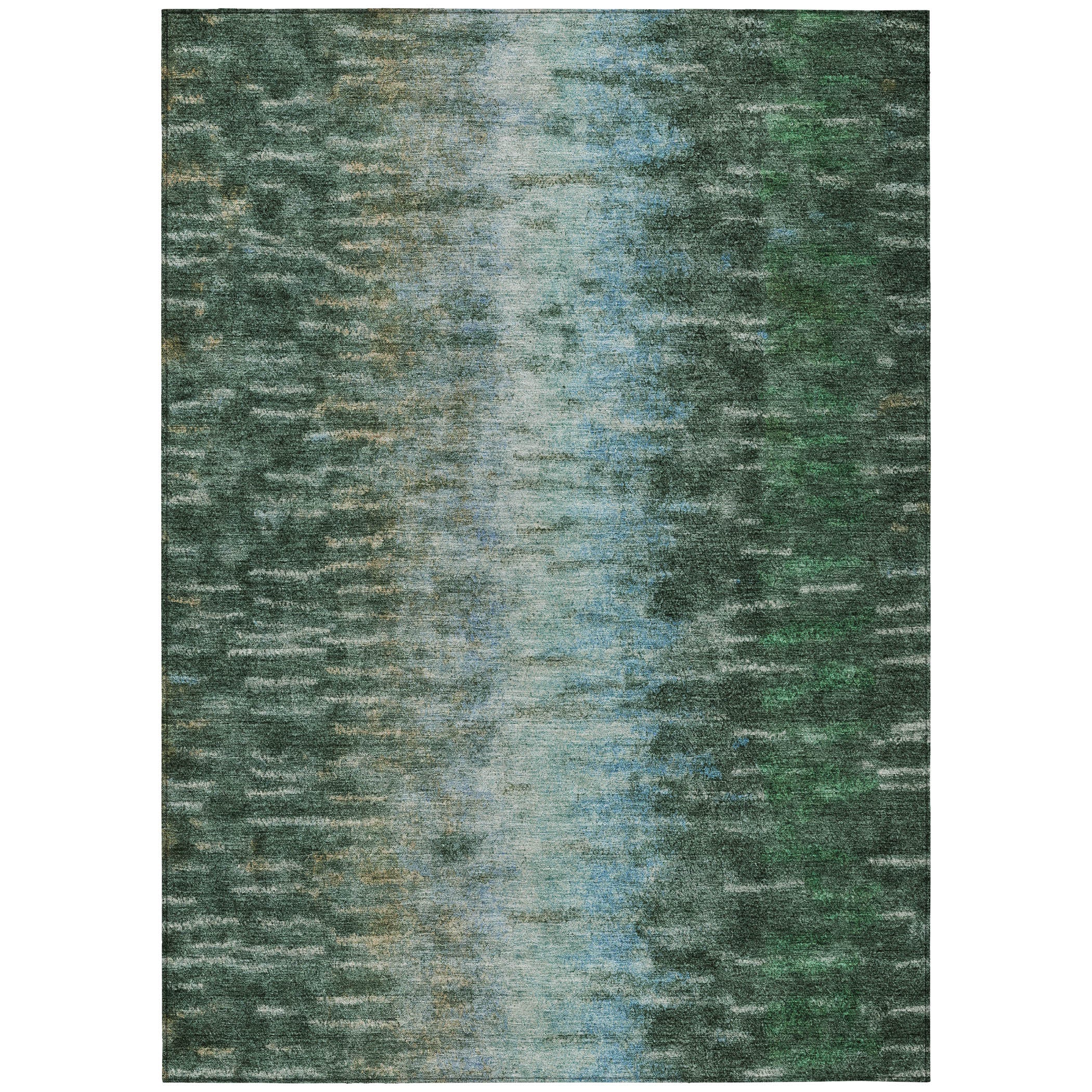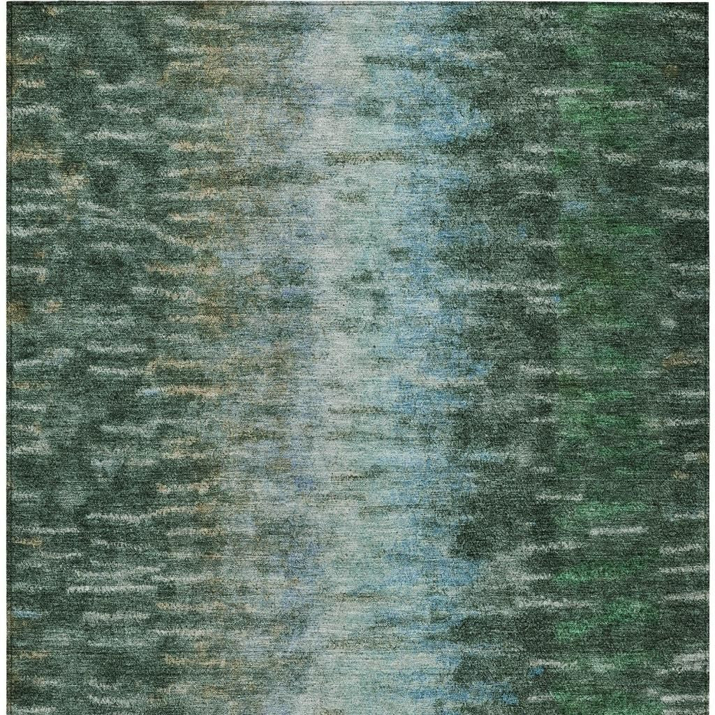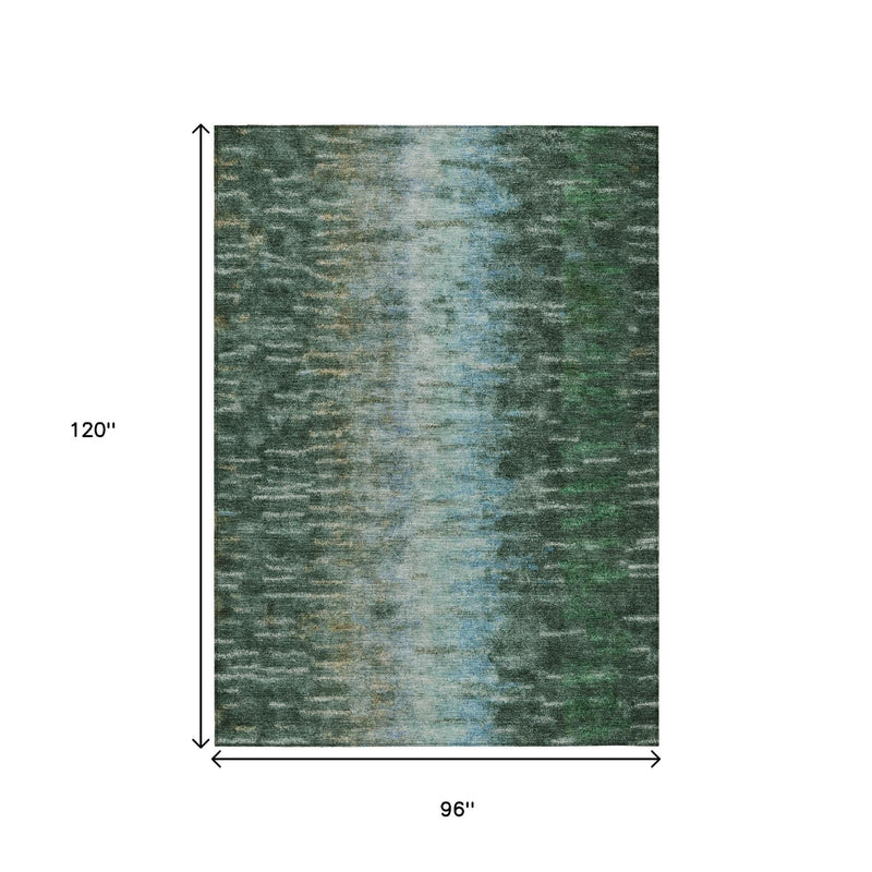 8' X 10' Emerald Teal Blue And Ivory Abstract Washable Indoor Outdoor Area Rug