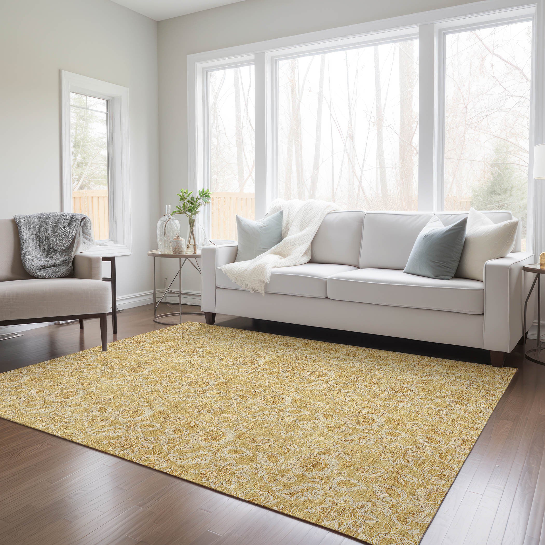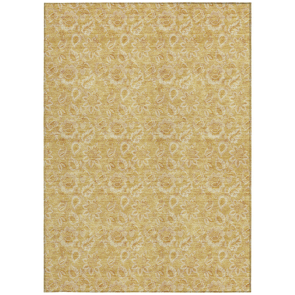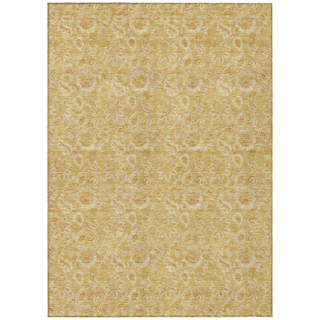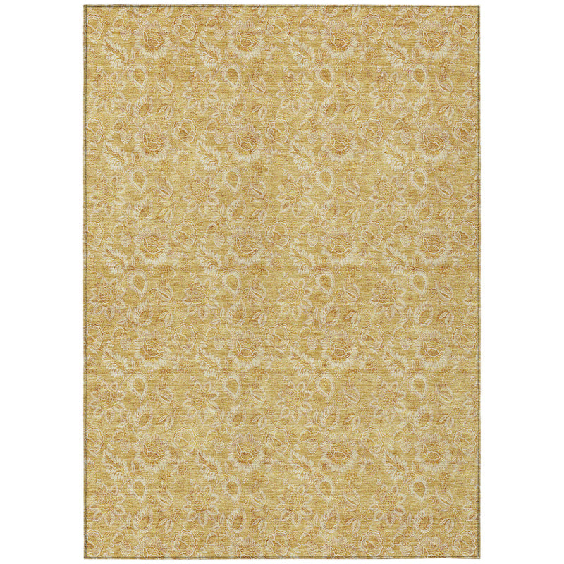 8' X 10' Gold And Wheat Floral Washable Indoor Outdoor Area Rug