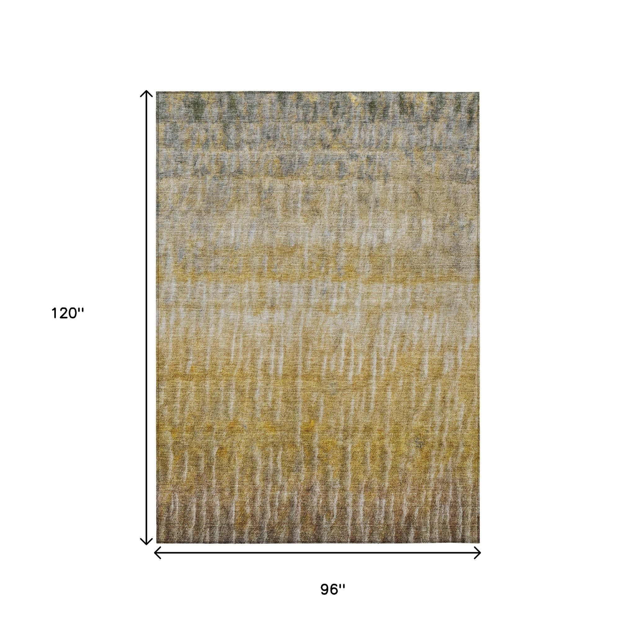 8' X 10' Gold Beige And Gray Abstract Washable Indoor Outdoor Area Rug