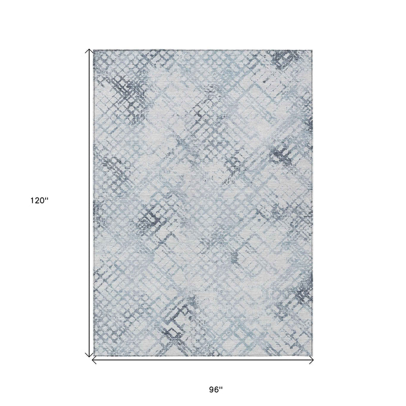 8' X 10' Navy Blue And Sky Blue Geometric Washable Indoor Outdoor Area Rug