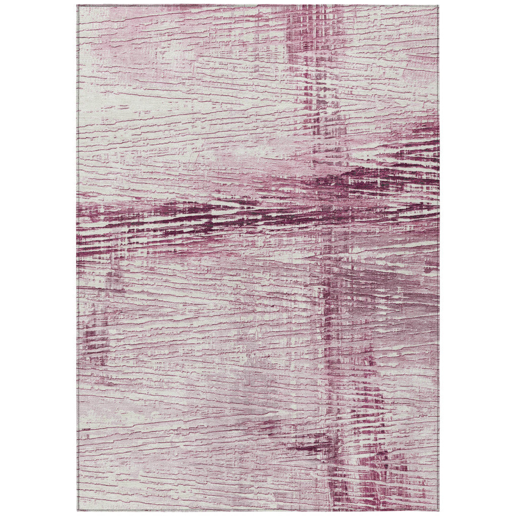 9' X 12' Blush And Ivory Striped Washable Indoor Outdoor Area Rug