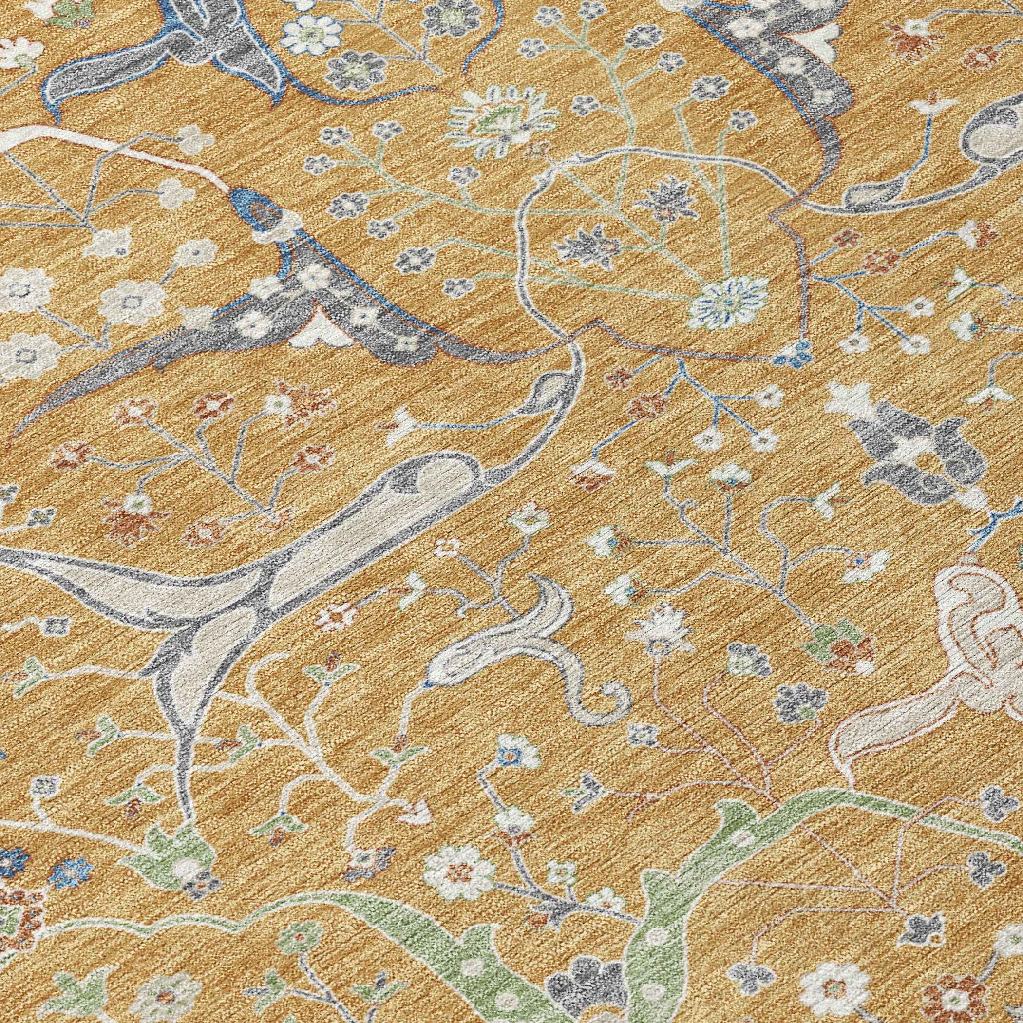9' X 12' Gold And Blue Floral Washable Indoor Outdoor Area Rug