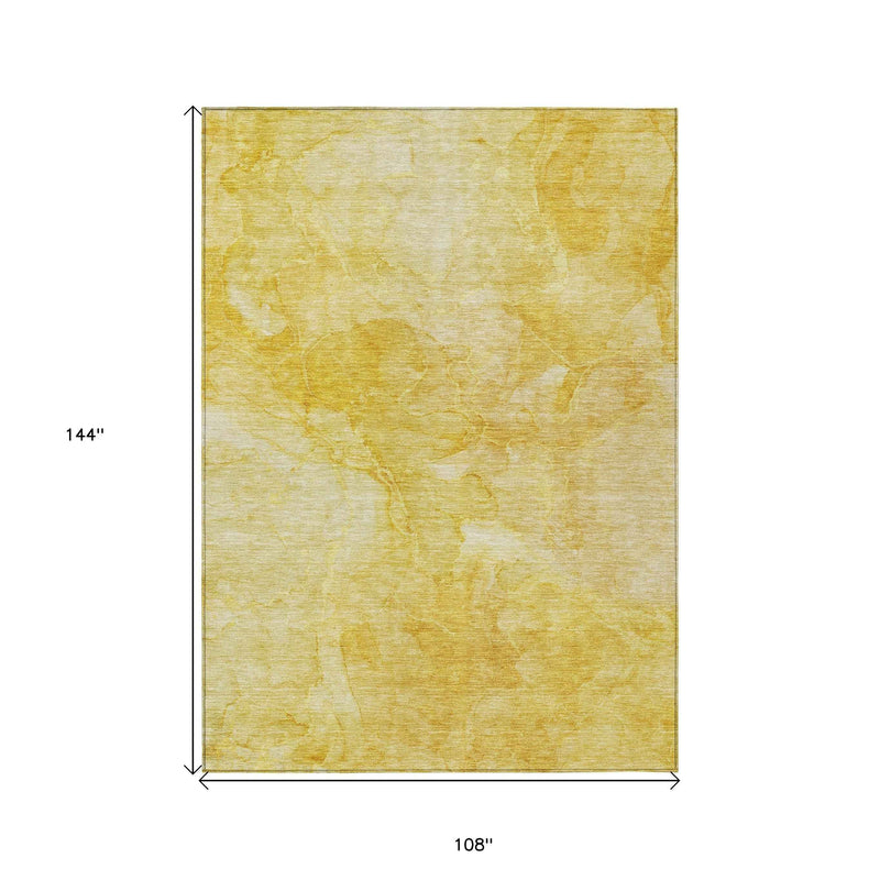 9' X 12' Gold And Yellow Nautical Washable Indoor Outdoor Area Rug