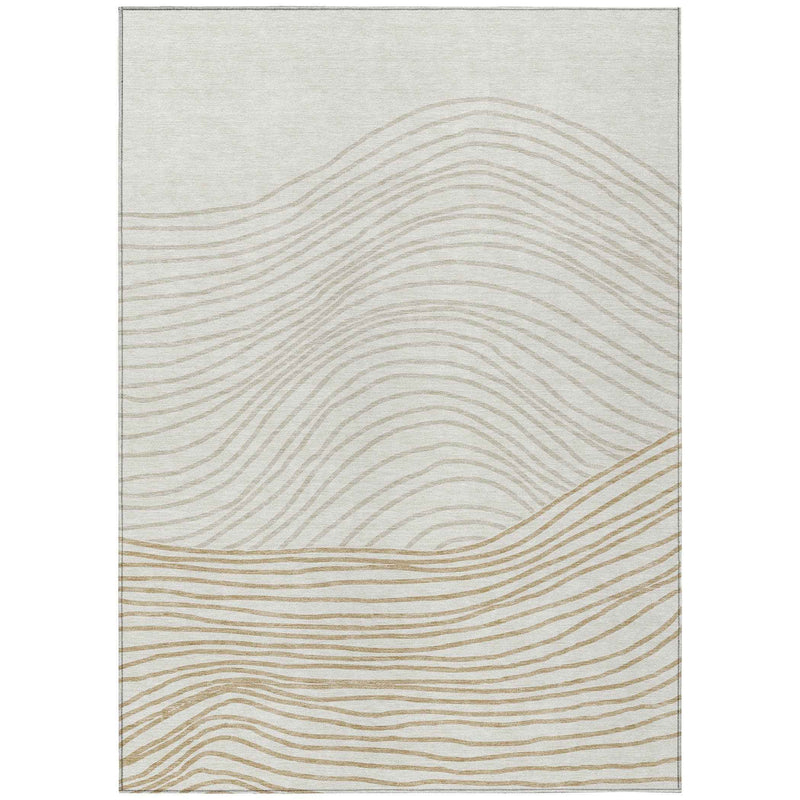 9' X 12' Ivory And Wheat Striped Washable Indoor Outdoor Area Rug