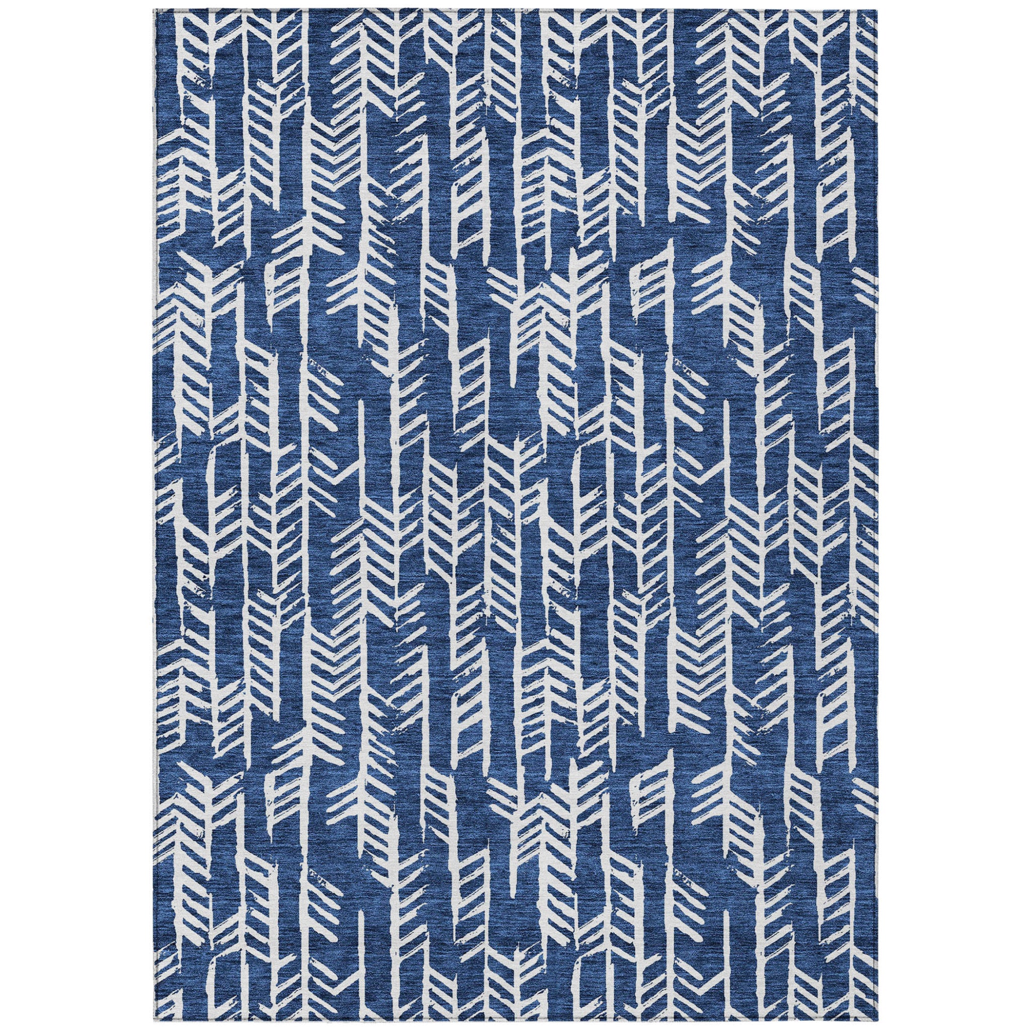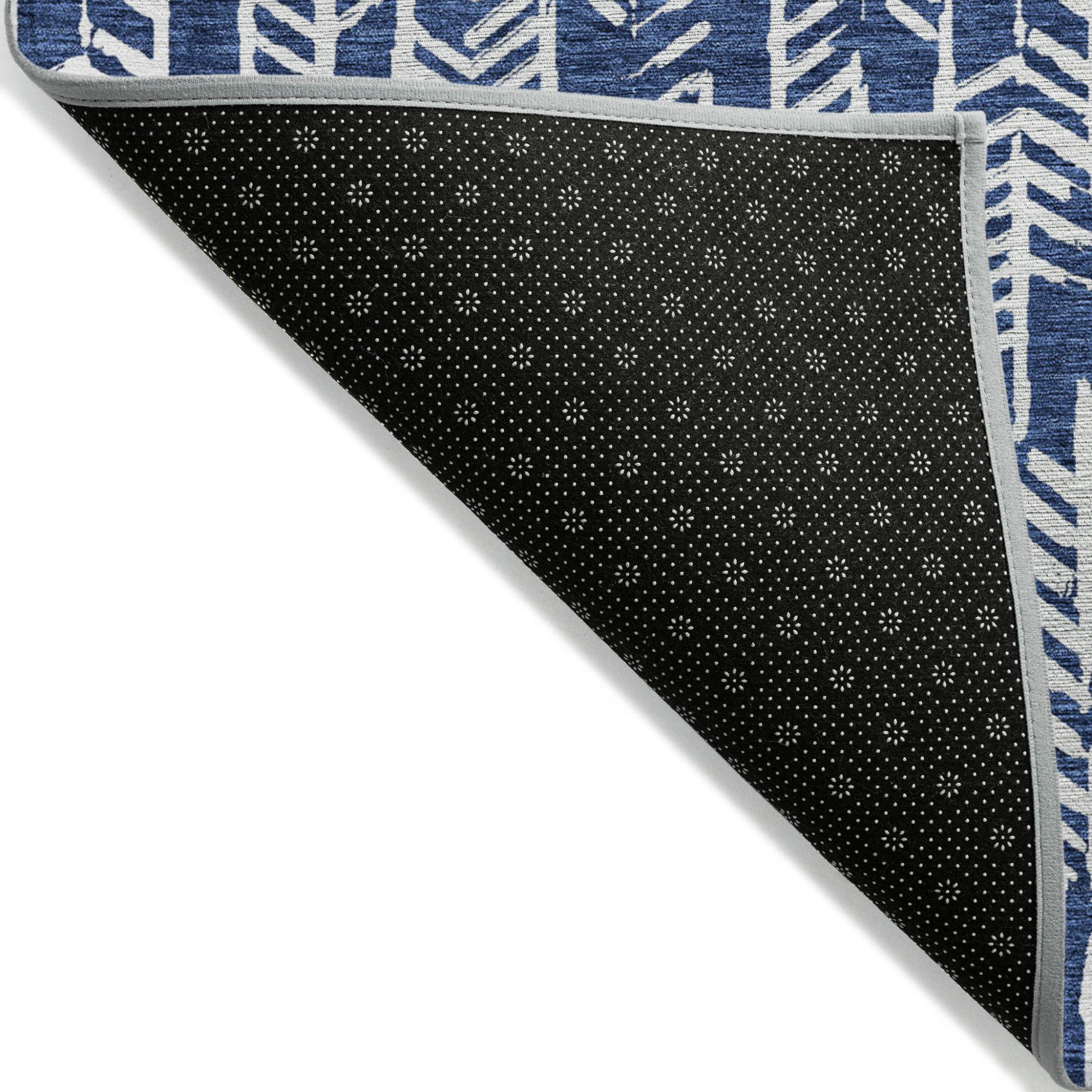9' X 12' Navy Blue And Ivory Tribal Washable Indoor Outdoor Area Rug