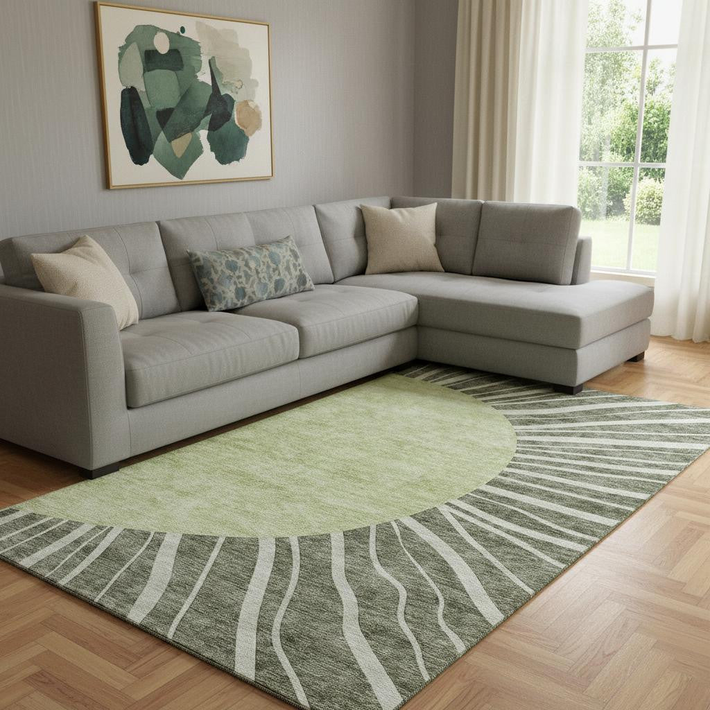 9' X 12' Olive Green And Ivory Abstract Washable Area Rug With UV Protection