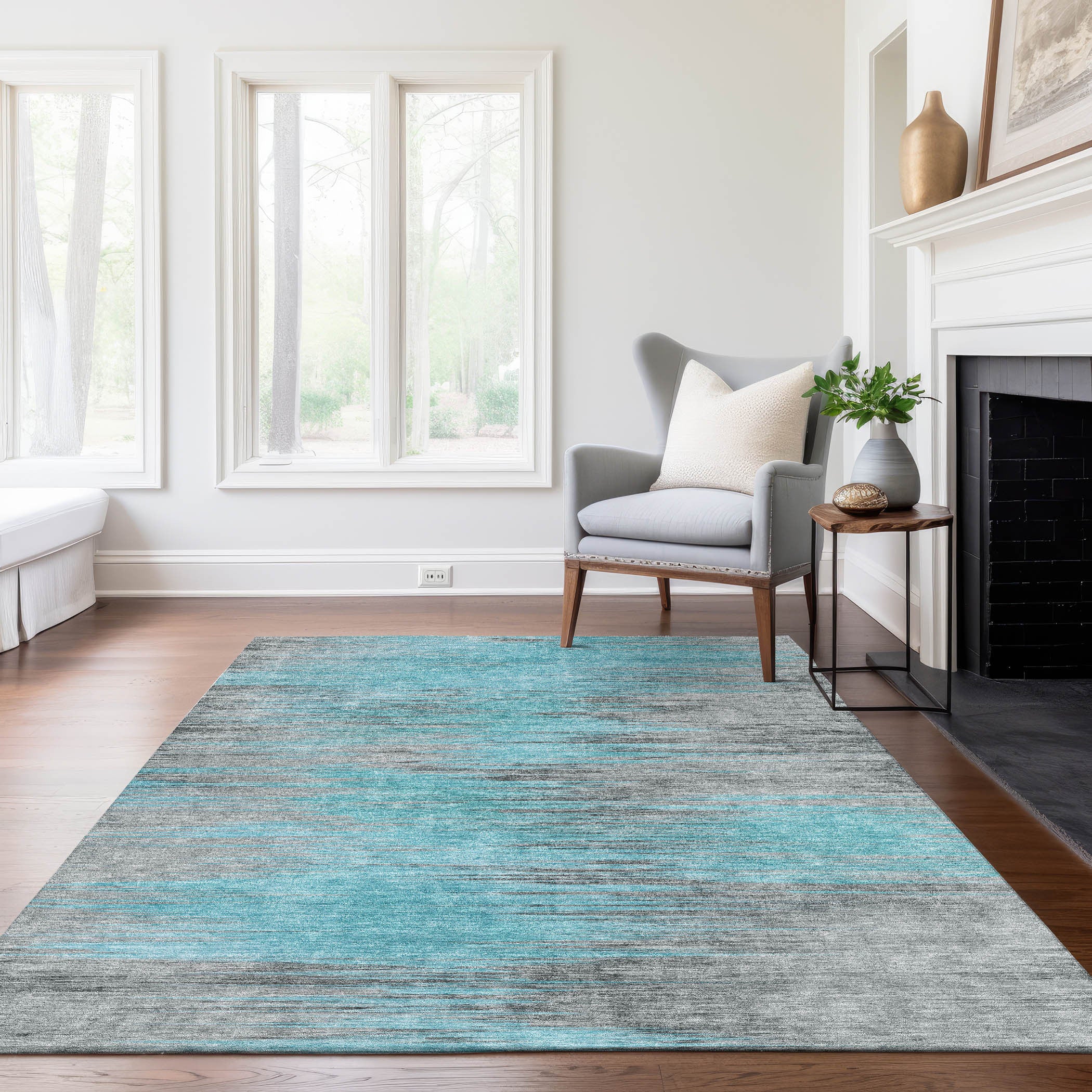 9' X 12' Teal Blue Charcoal And Gray Abstract Washable Indoor Outdoor Area Rug Перейти к содержанию