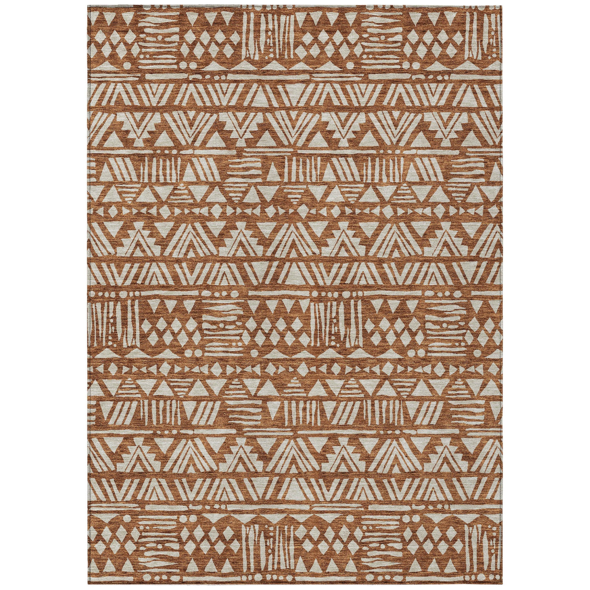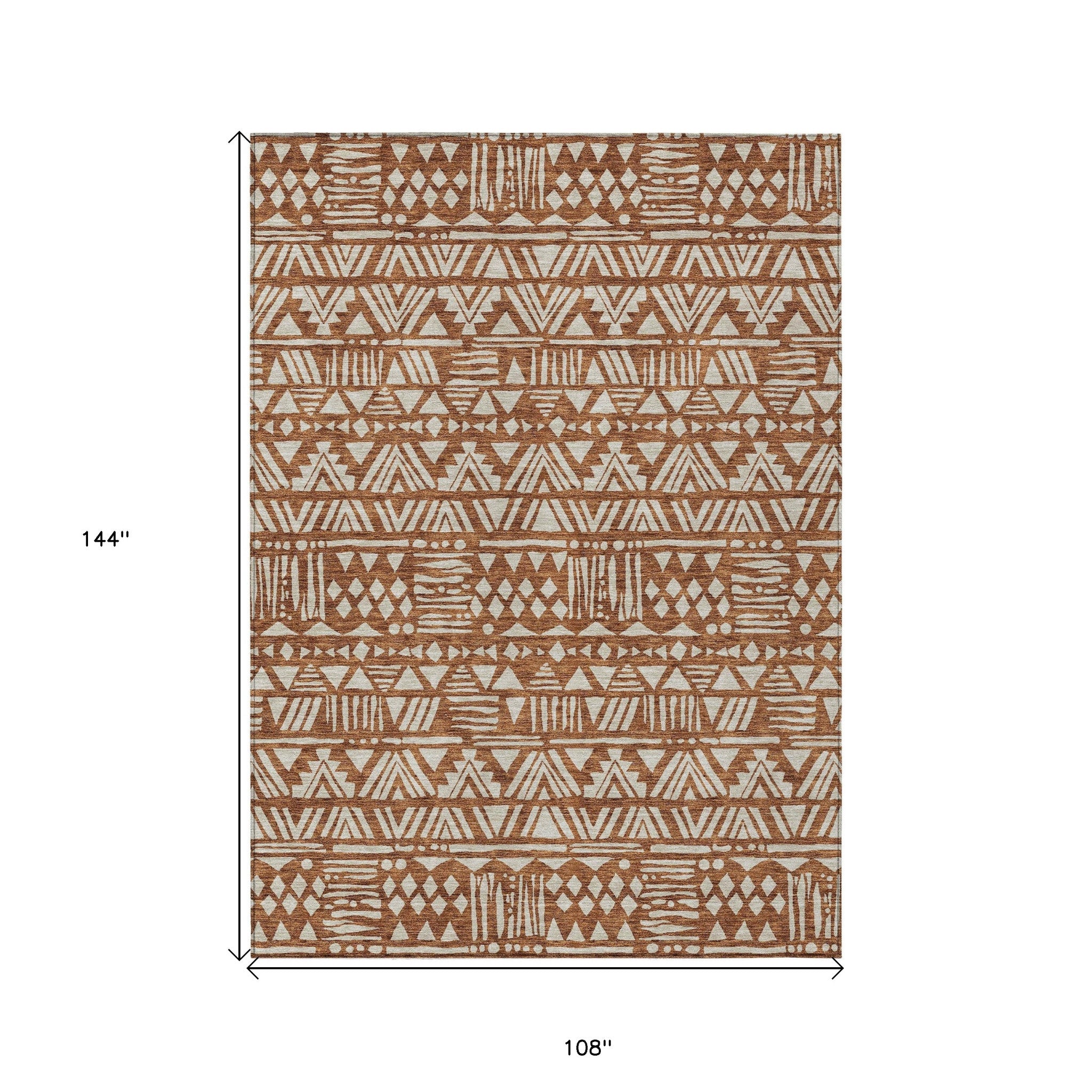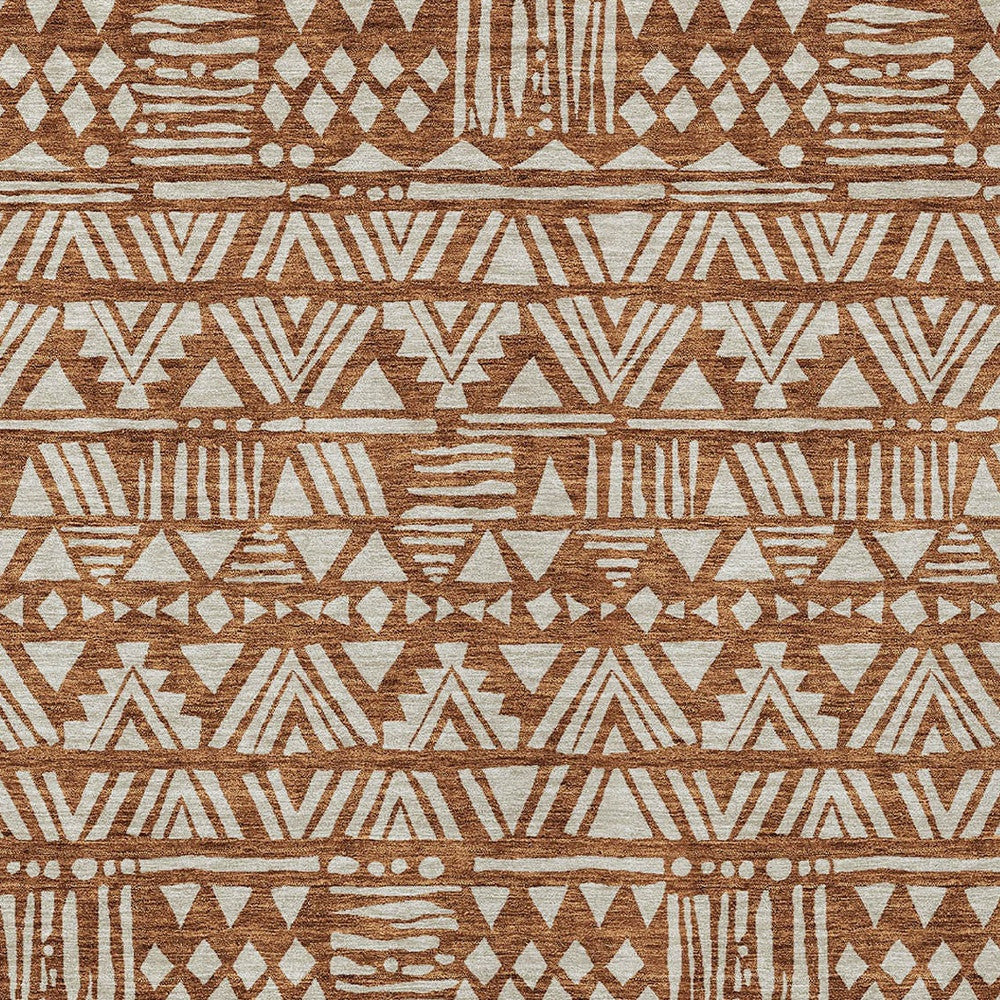 9' X 12' Terra Cotta And Beige Southwestern Washable Indoor Outdoor Area Rug