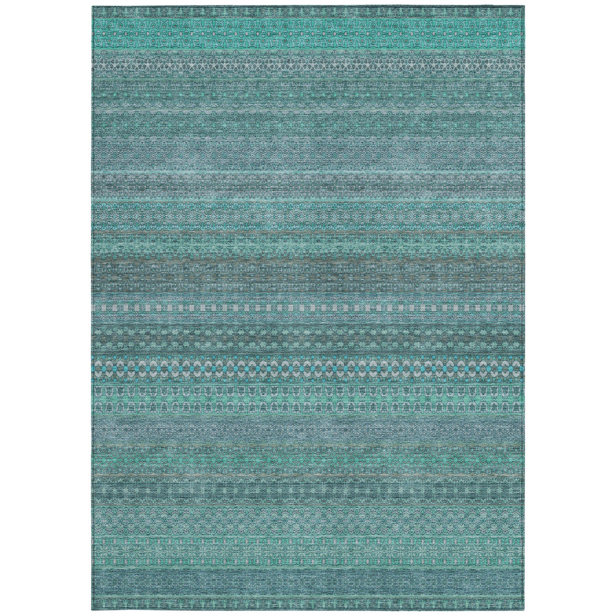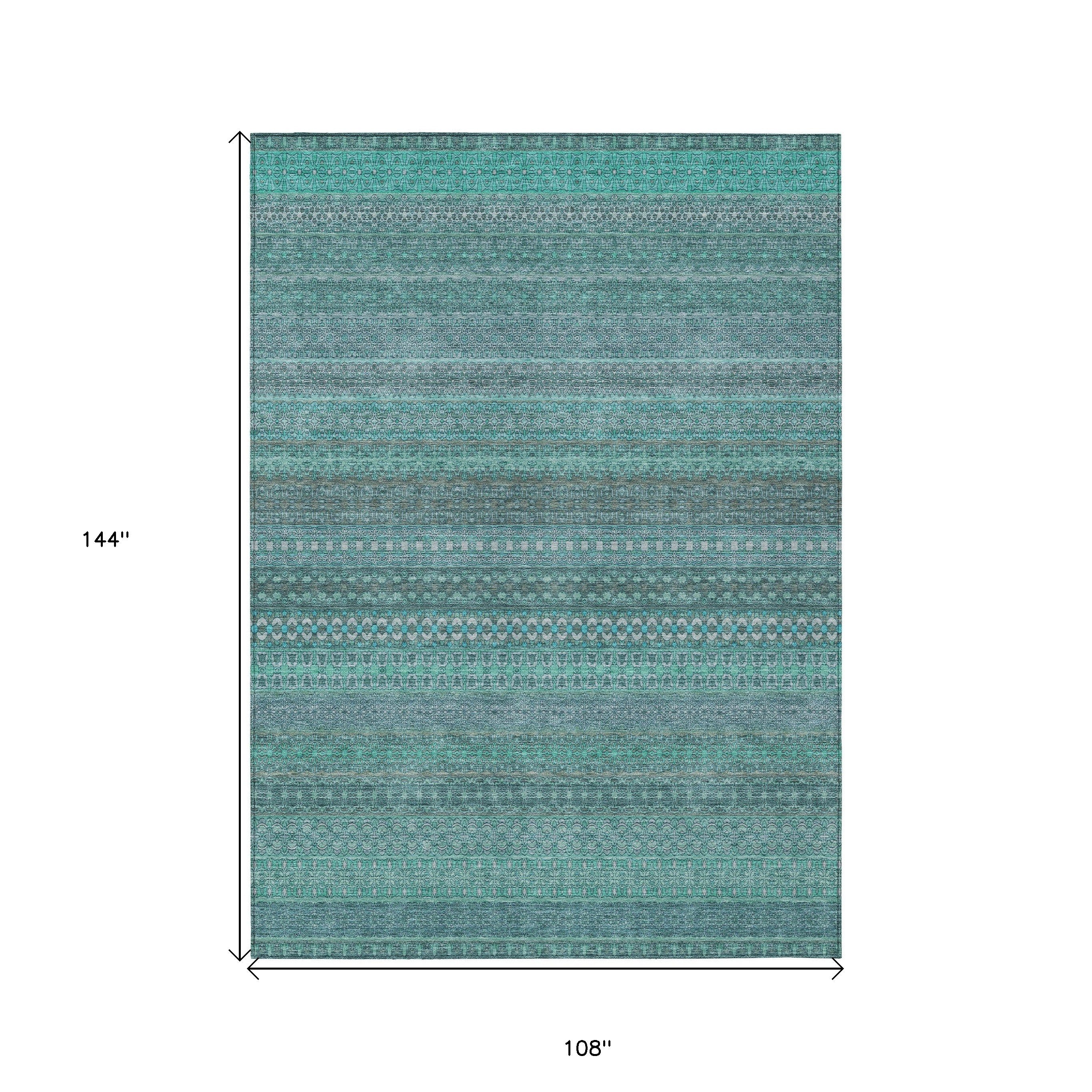 9' X 12' Turquoise Striped Washable Non Skid Indoor Outdoor Area Rug
