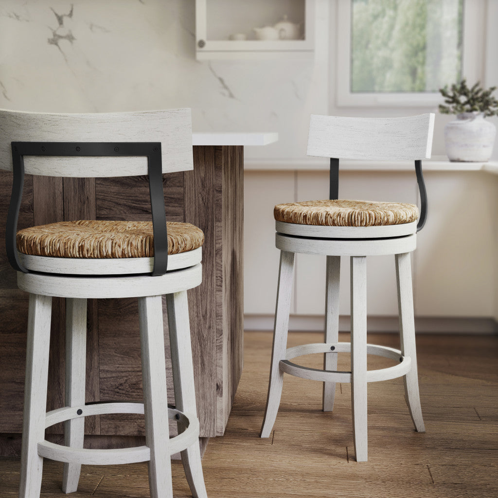 Brown and White Rattan and Solid Wood Low Back Bar Height Swivel Bar Chair Перейти к содержанию