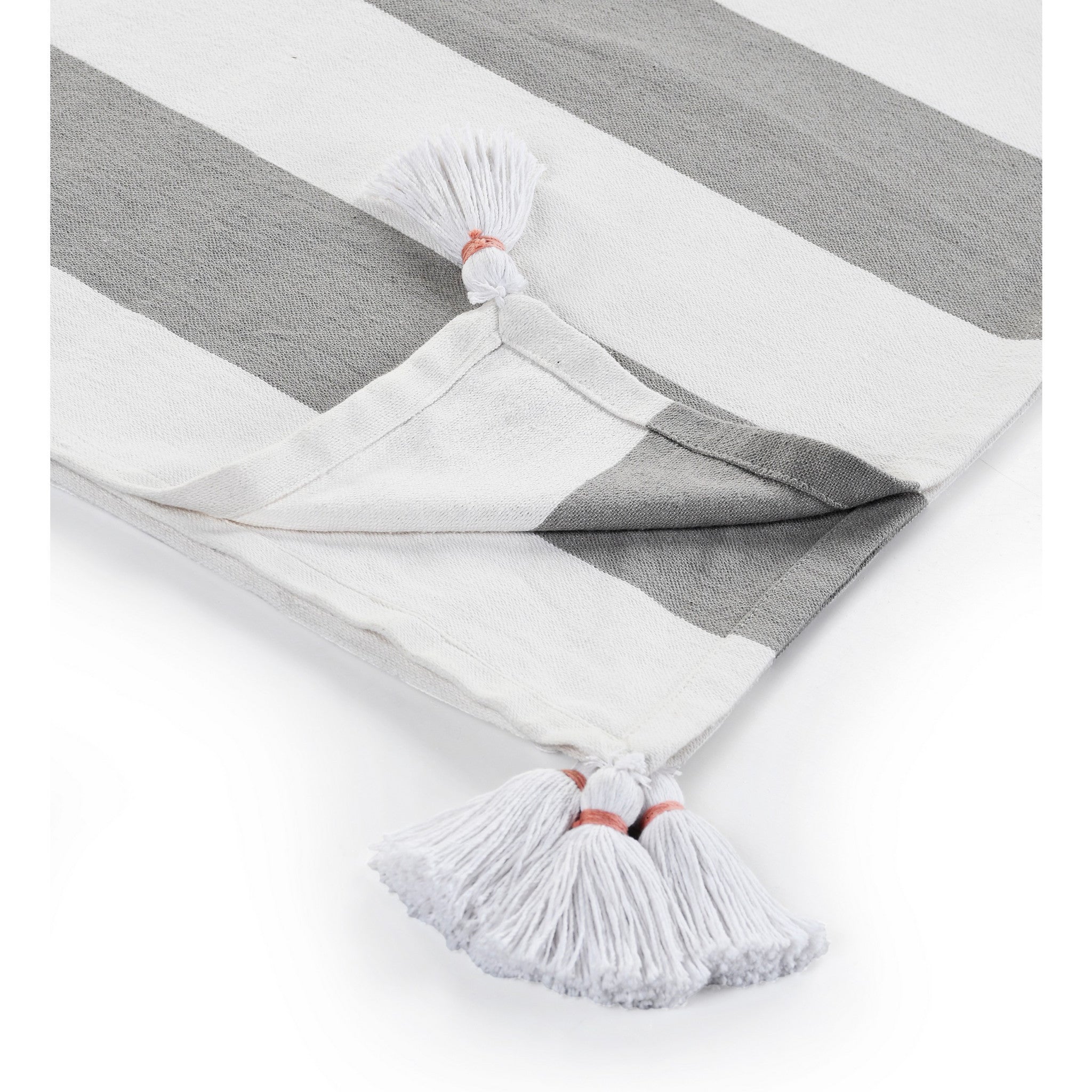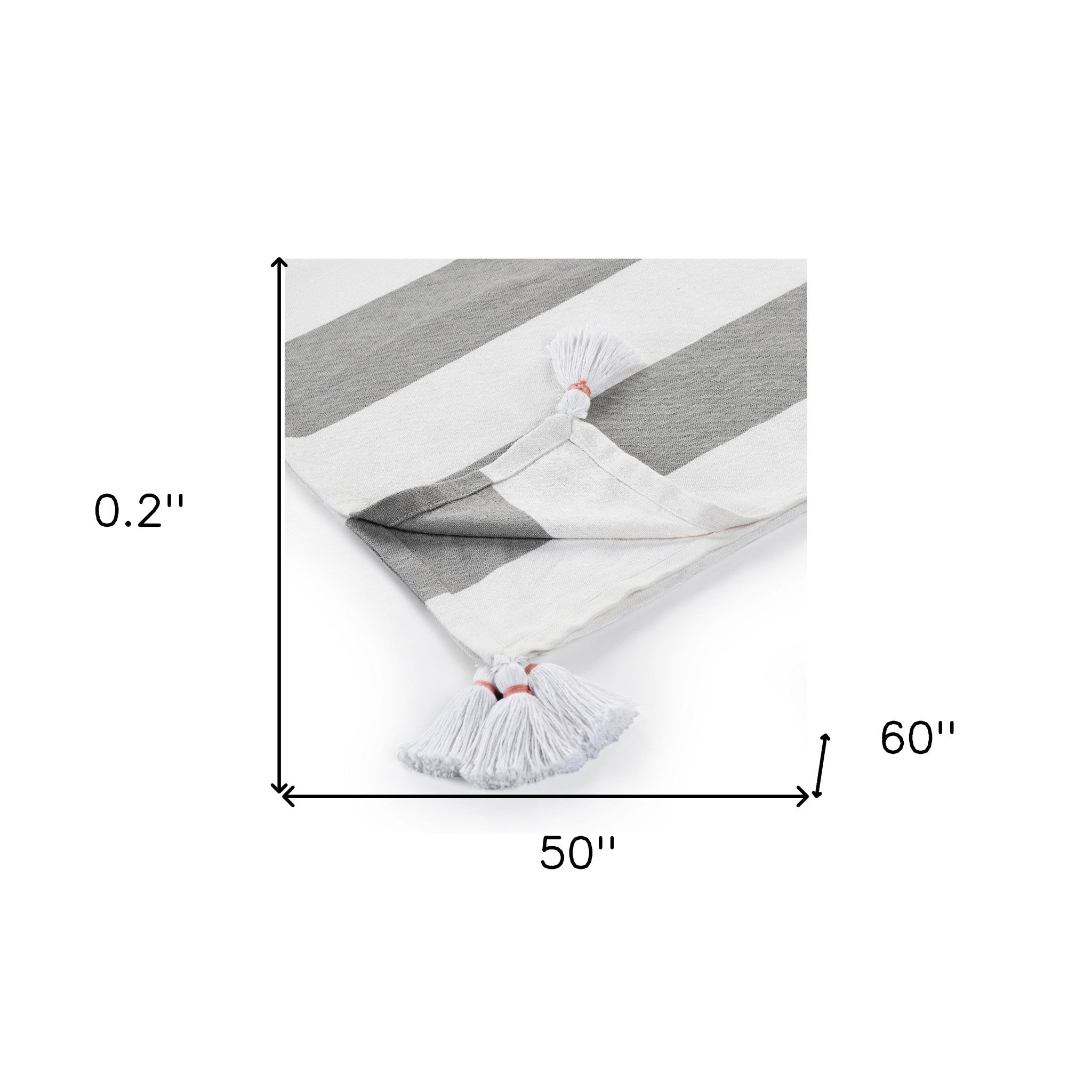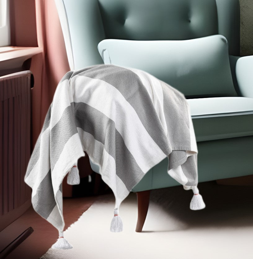 This gray and white knitted cotton striped throw blanket is the perfect accent you've been searching for. Hot cocoa tastes better with a cozy blanket. This textural knitted offering in a striped pattern is the perfect pick those cozy winter nights in. Made from cotton this blanket will make a great addition to any room it's added to. Add extra texture to your decor and turn your room into an inviting space. Perfect for your favorite chair, bed or lounging on the couch, this blanket helps bring a warm and fashionable flair to your space. 0.2" H x 50" W x 60" D