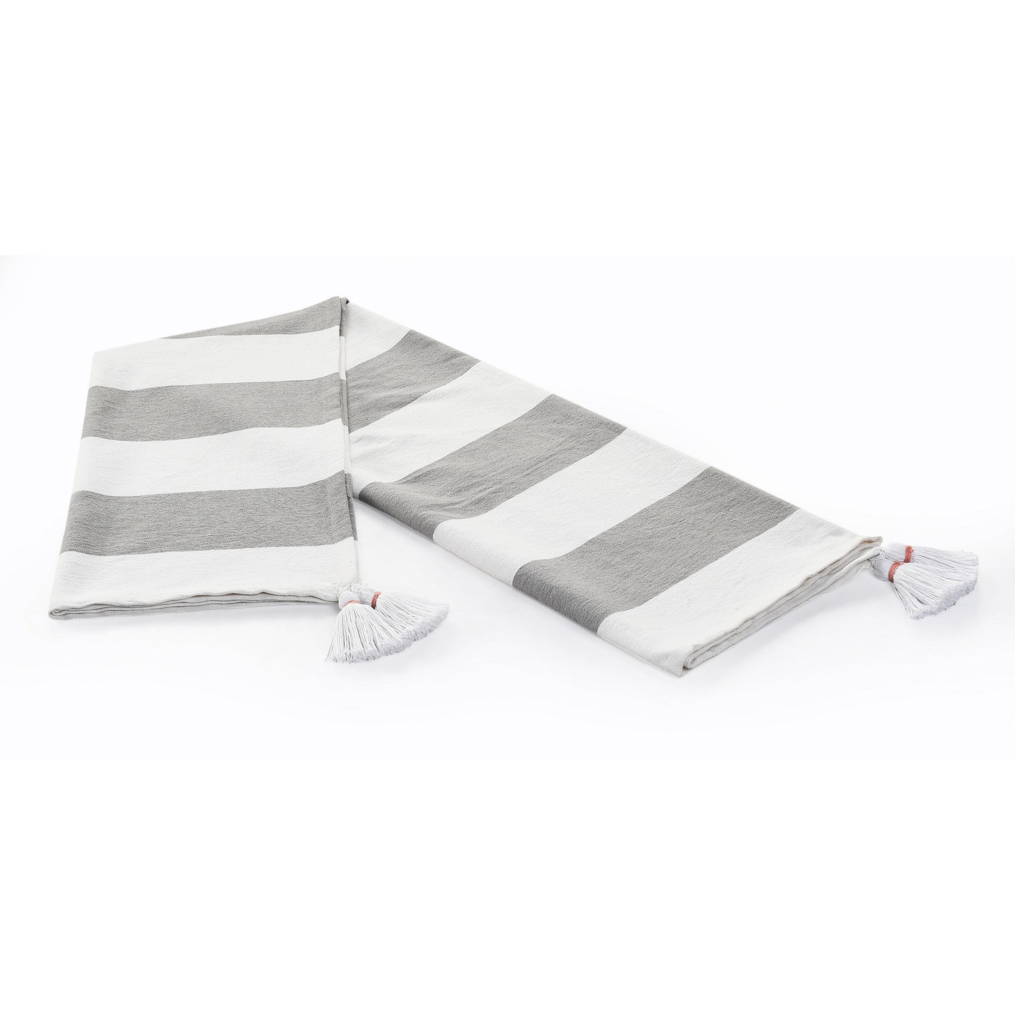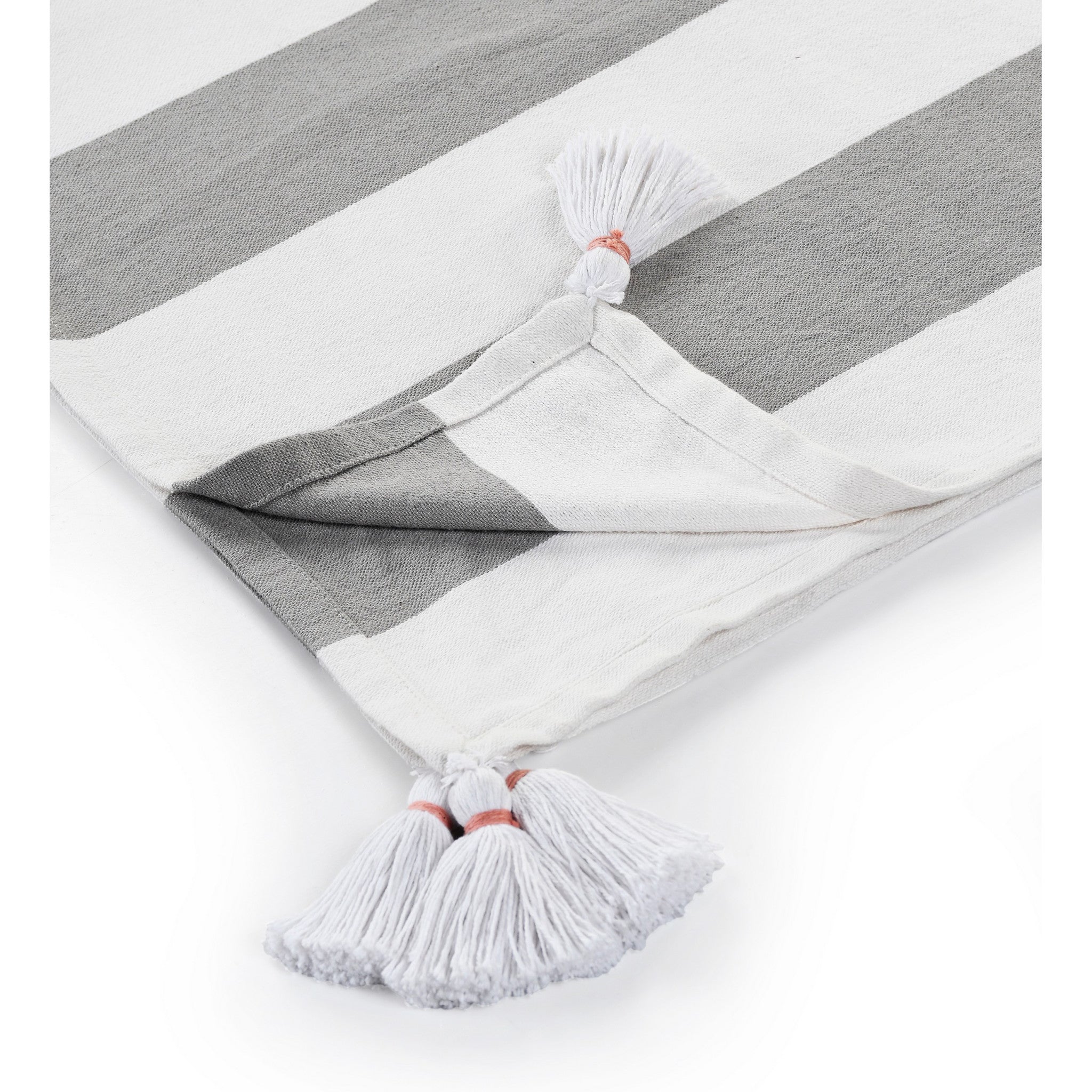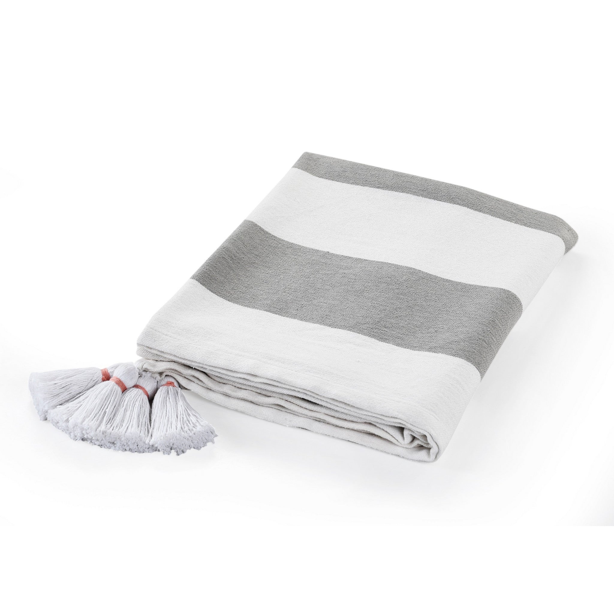 This gray and white knitted cotton striped throw blanket is the perfect accent you've been searching for. Hot cocoa tastes better with a cozy blanket. This textural knitted offering in a striped pattern is the perfect pick those cozy winter nights in. Made from cotton this blanket will make a great addition to any room it's added to. Add extra texture to your decor and turn your room into an inviting space. Perfect for your favorite chair, bed or lounging on the couch, this blanket helps bring a warm and fashionable flair to your space. 0.2" H x 50" W x 60" D